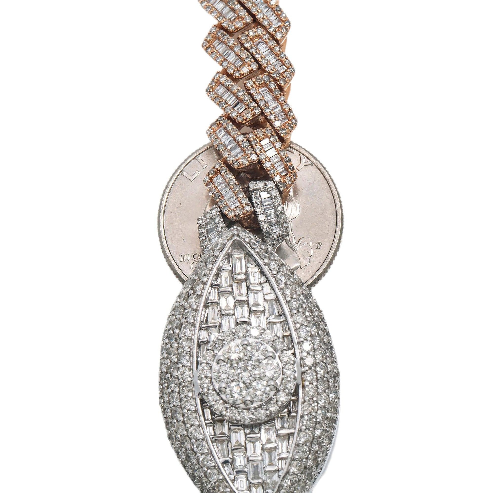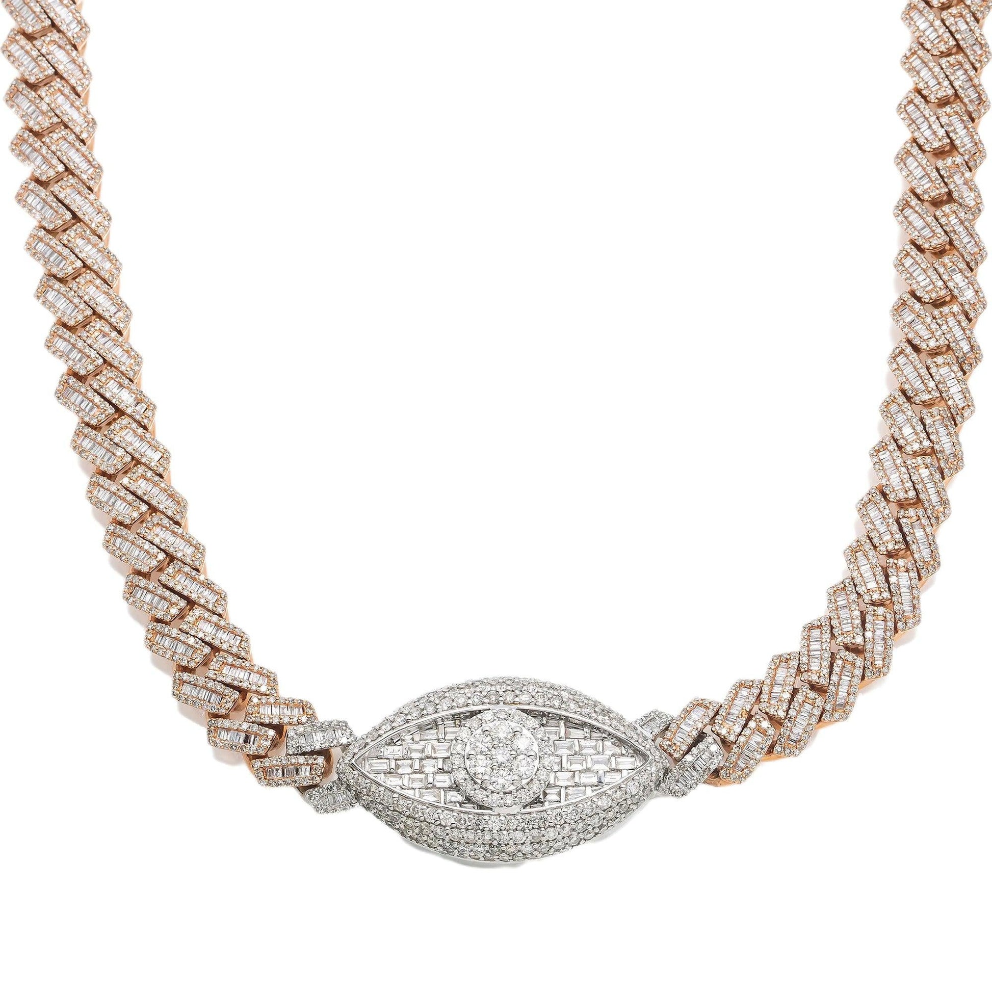 10K GOLD BAGUETTE CLUSTER DIAMOND 18"/12MM TWO TONE CUBAN LINK EYE CHAIN 22.62 CT