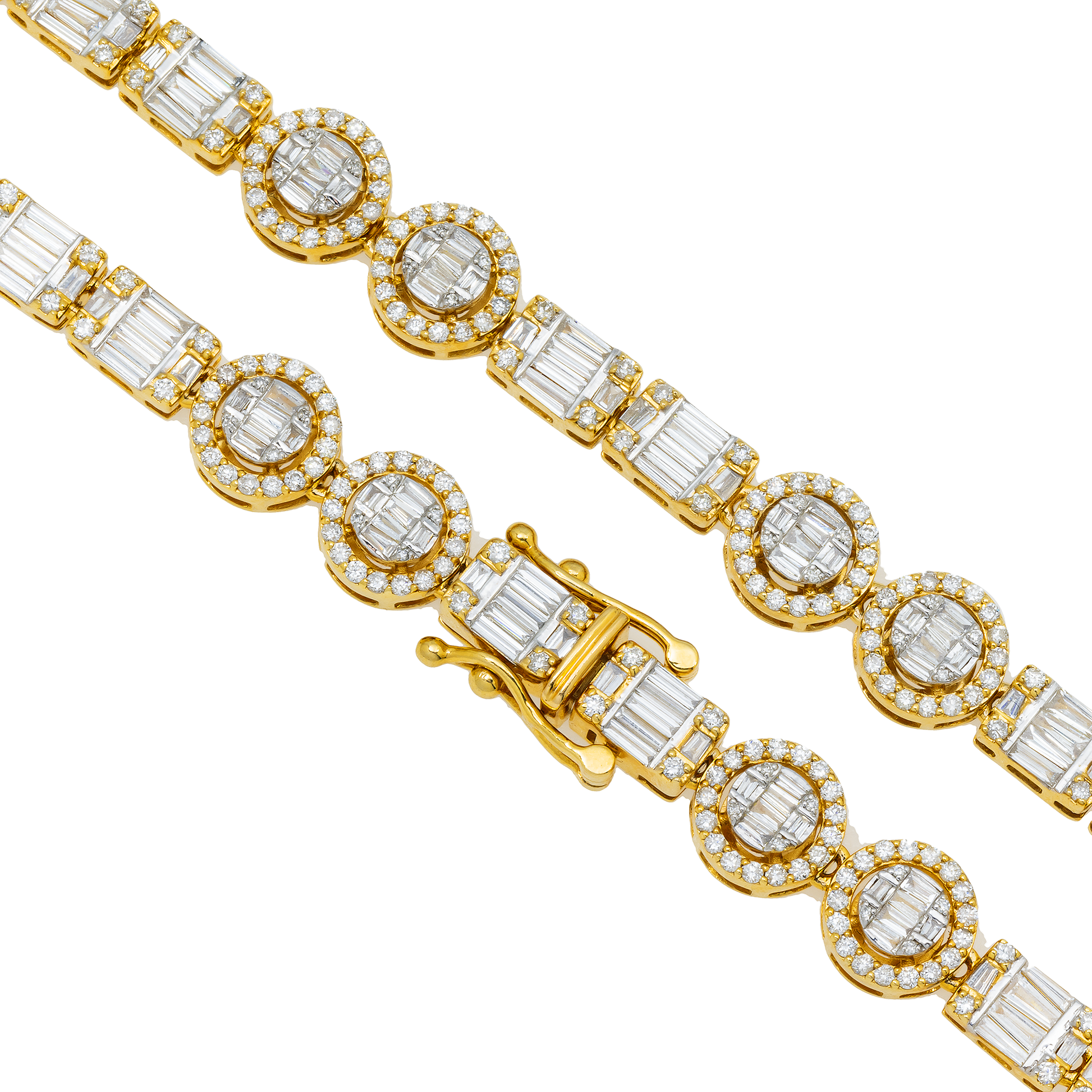 10K GOLD BAGUETTE AND ROUND DIAMOND CHAIN 13.71 CT