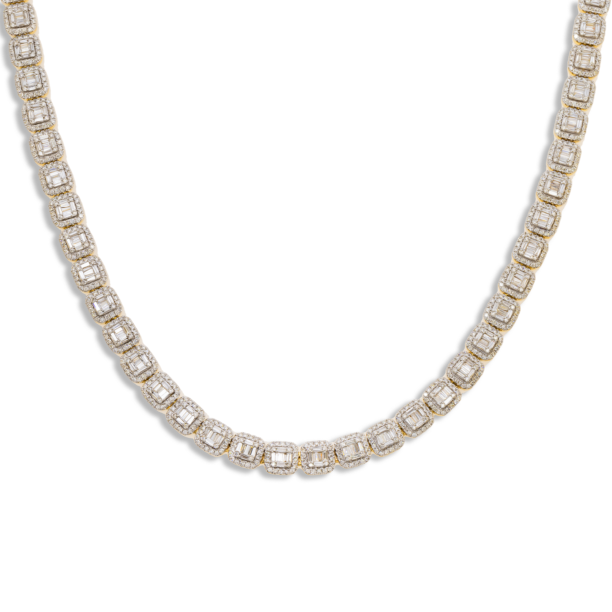 10K GOLD 7MM BAGUETTE DIAMOND CLUSTER CHAIN 16.75 CTW