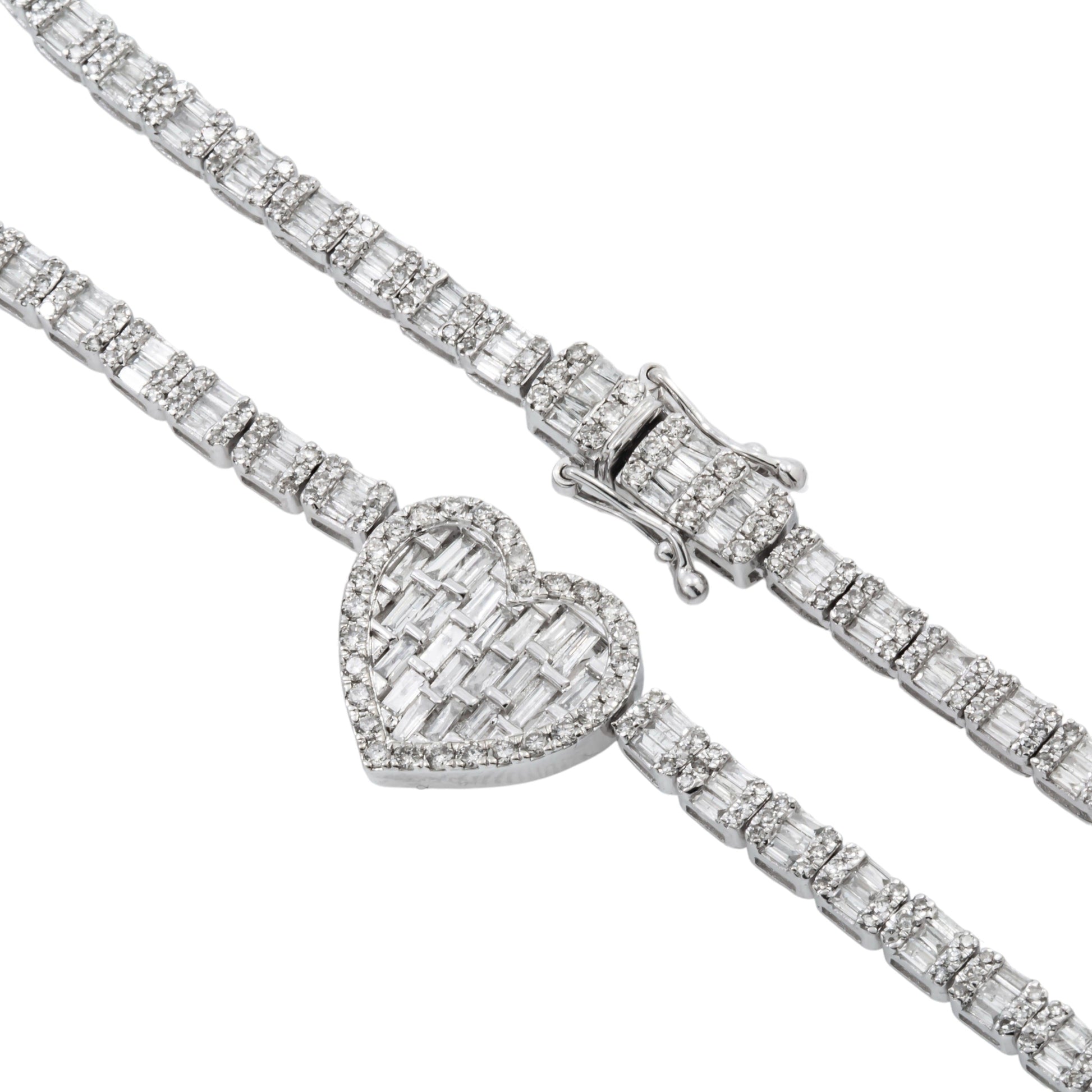 10K GOLD BAGUETTE AND ROUND DIAMOND HEART CHAIN 7.36 CT