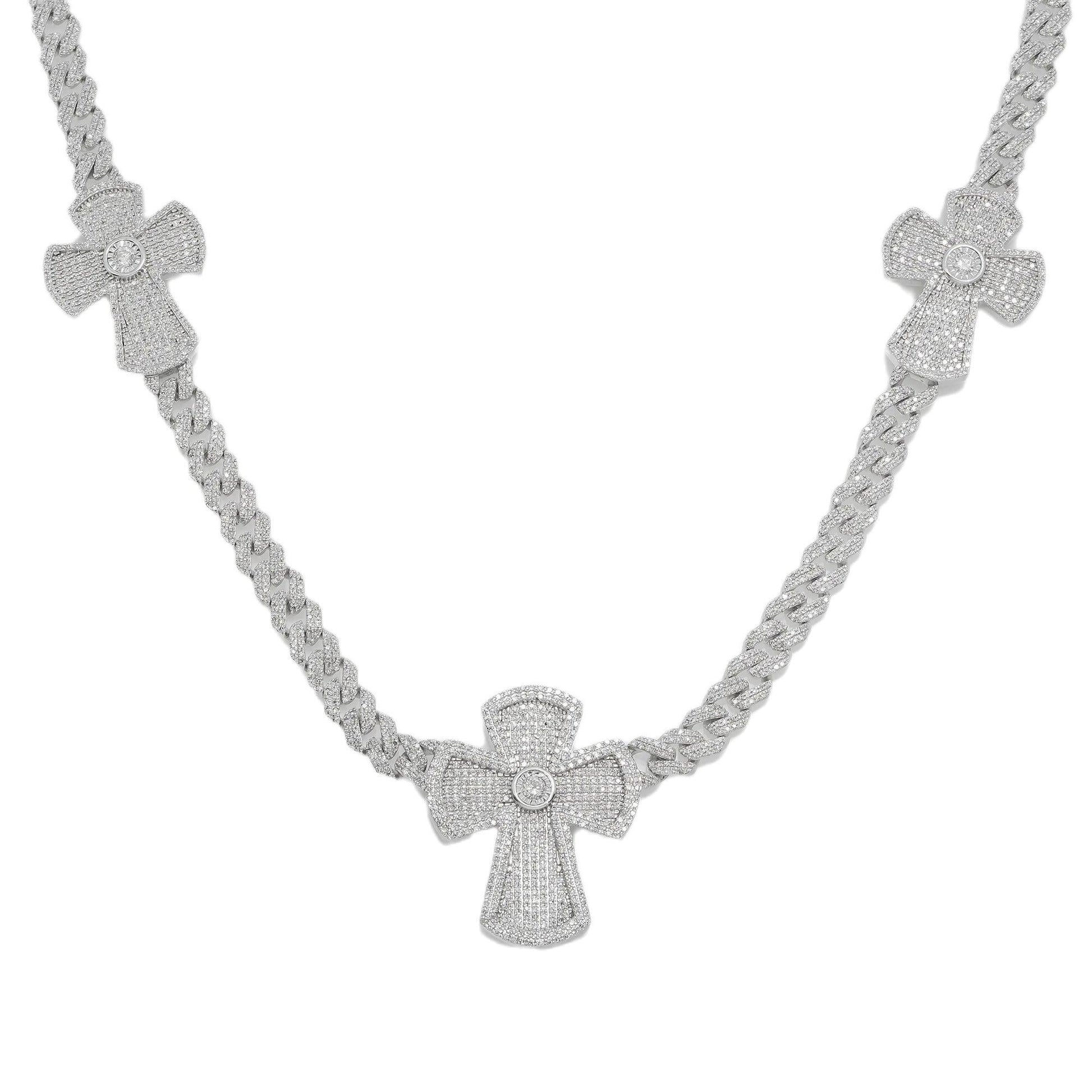 10K GOLD DIAMOND OPEN CUBAN LINK CROSS CHAIN 6.60 CT