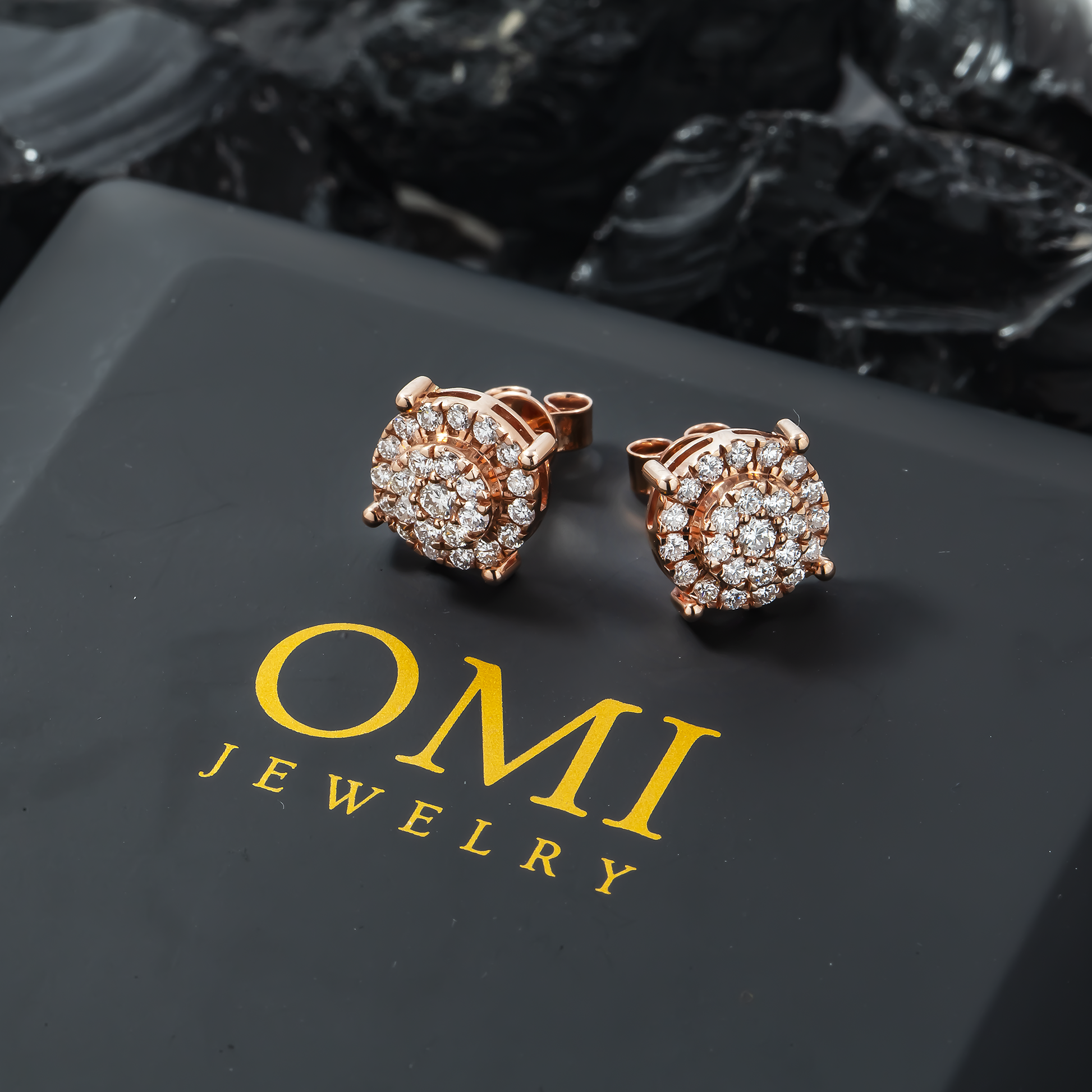 10K GOLD ROUND DIAMOND CLUSTER EARRINGS 1.04 CTW