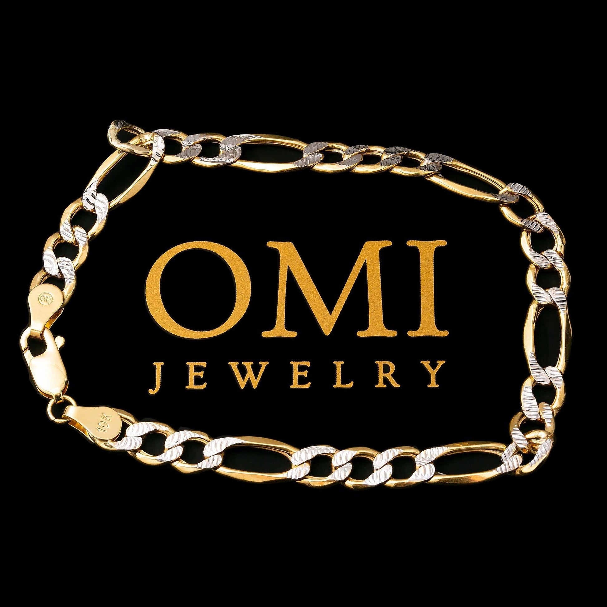 HOLLOW 10K YELLOW GOLD DIAMOND CUT FIGARO BRACELET