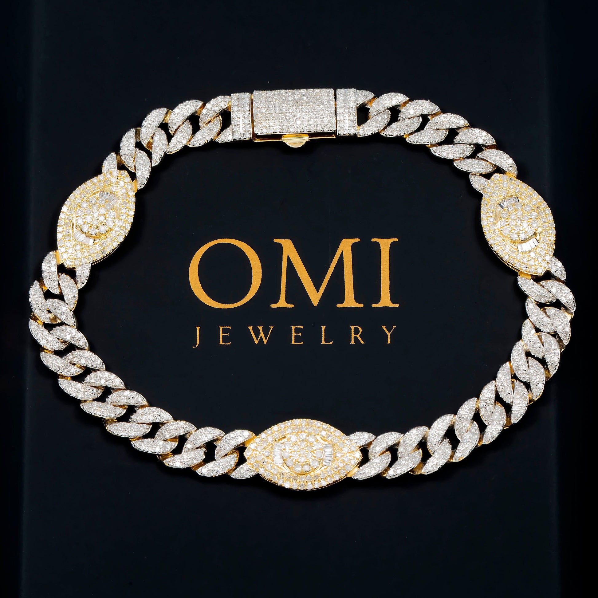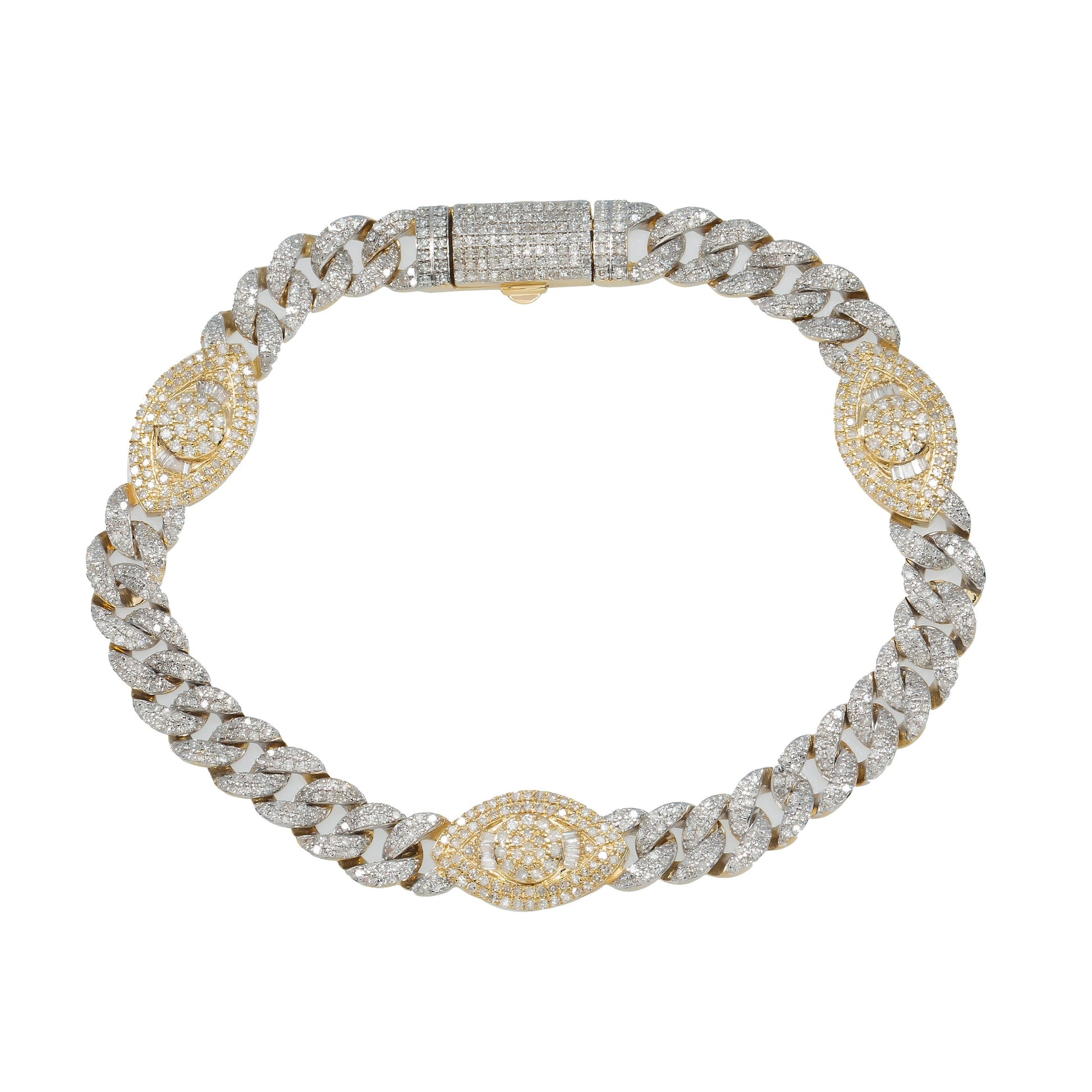 14K GOLD CUBAN EVIL EYES BRACELET 3.40 CT DIAMONDS