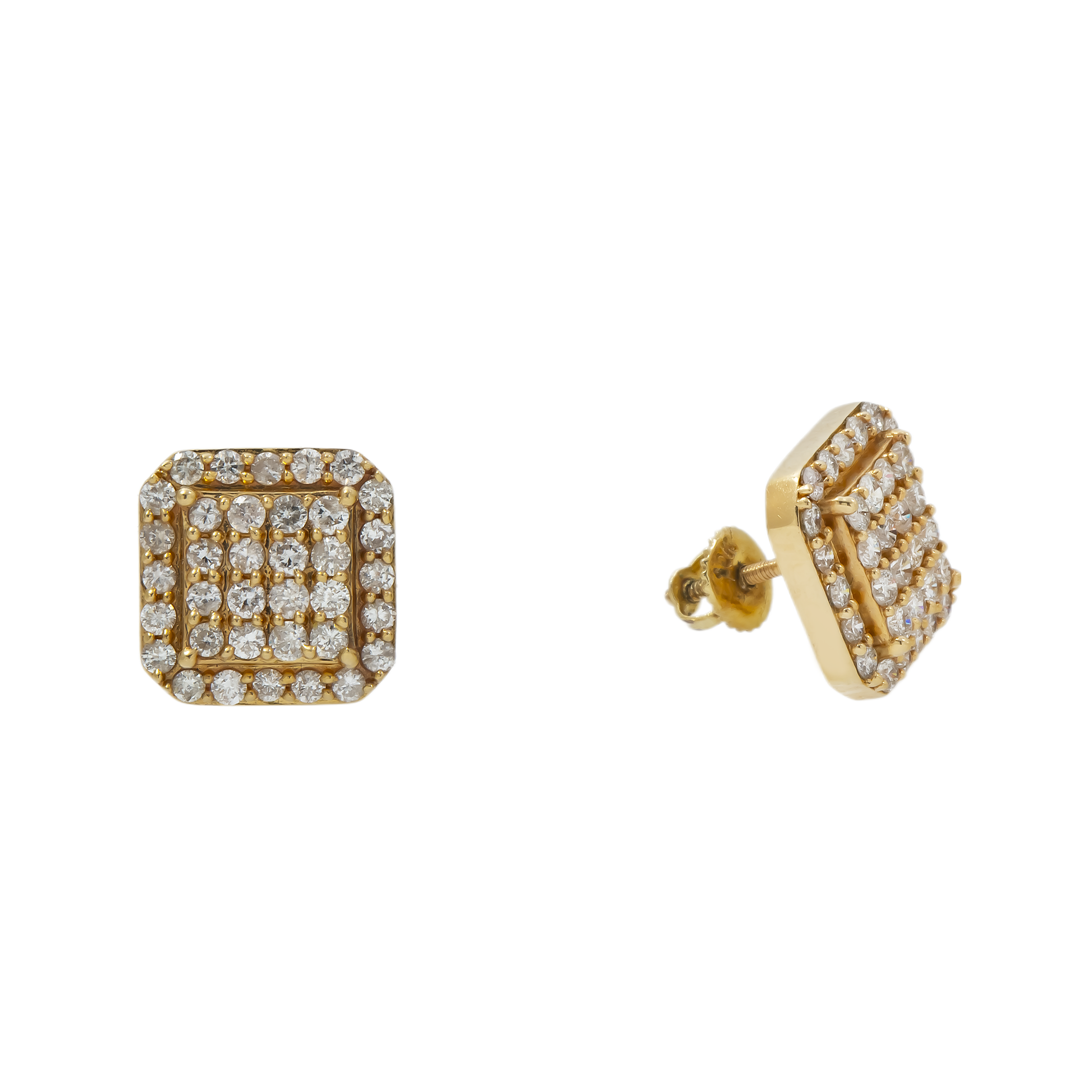 14K GOLD ROUND DIAMOND CLUSTER SQUARE SHAPE EARRINGS 1.31 CTW