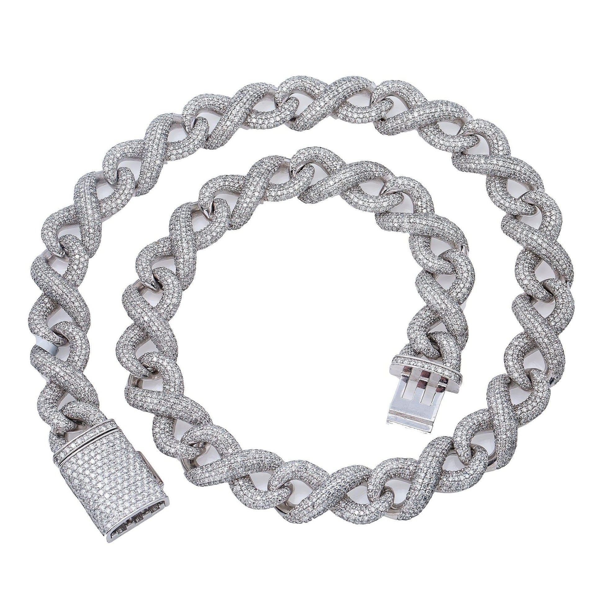 14K WHITE GOLD 20"/15MM CUBAN CHAIN WITH 46 CT DIAMONDS