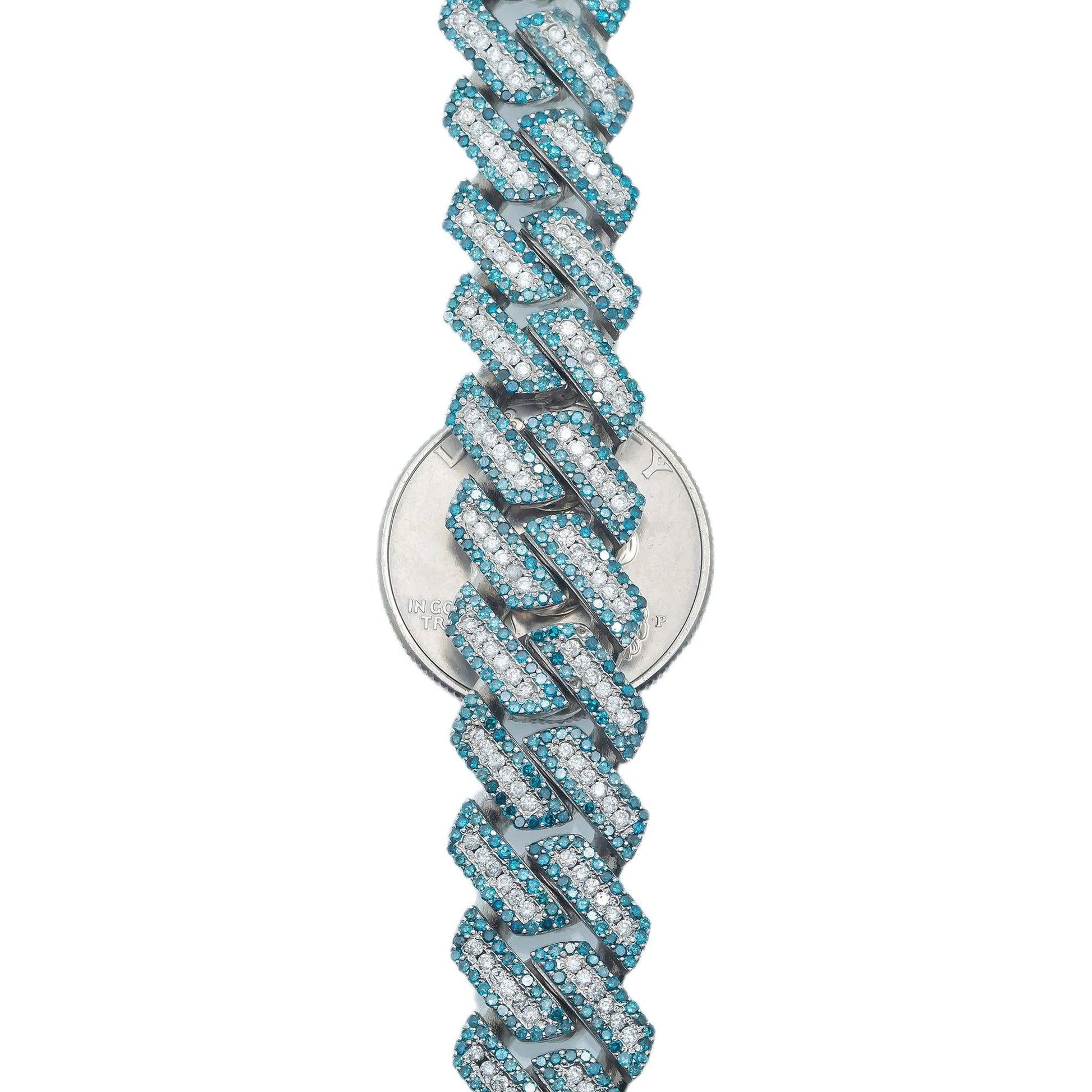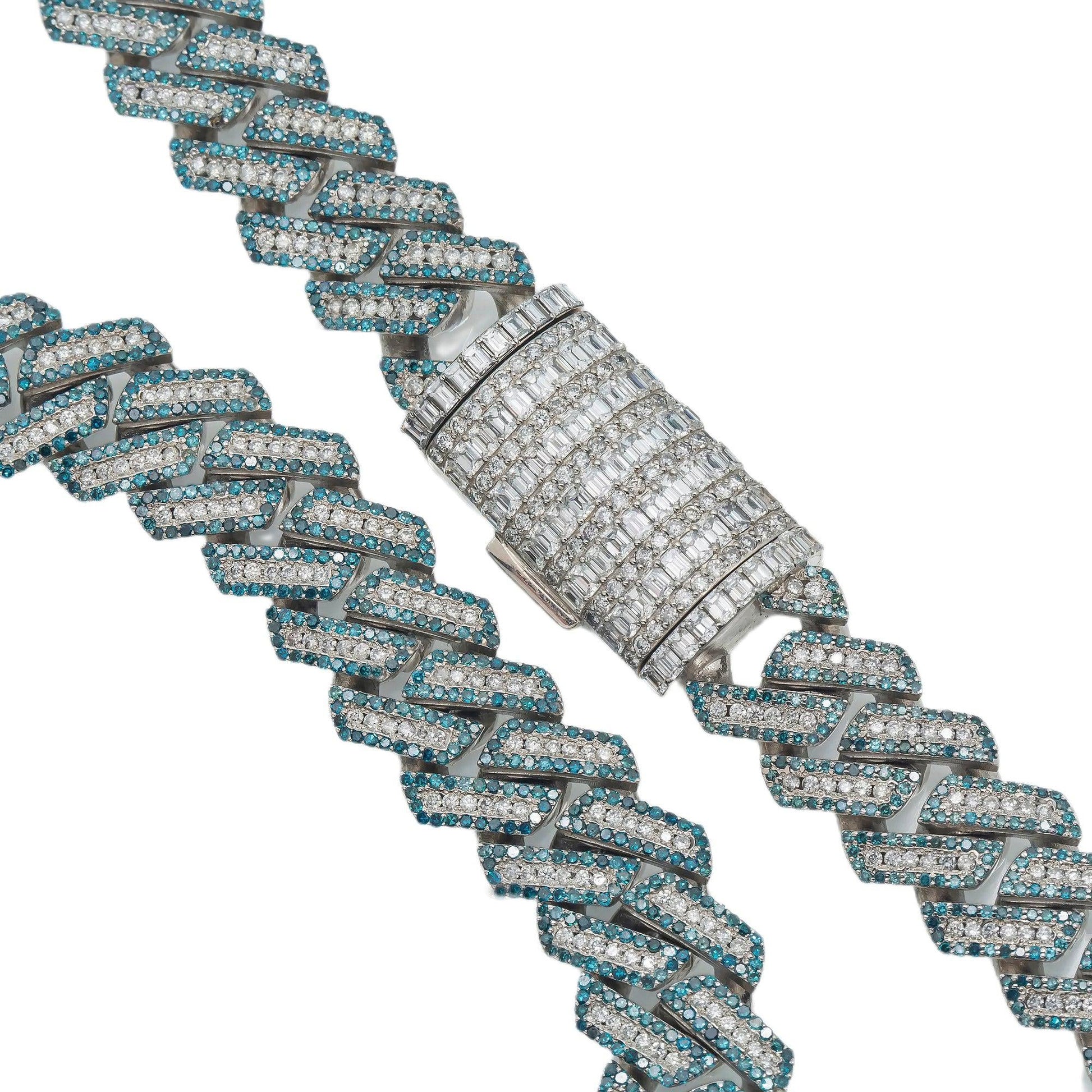 14K WHITE GOLD WHITE AND BLUE DIAMOND 22"/14MM PRONG CUBAN LINK CHAIN 28 CT