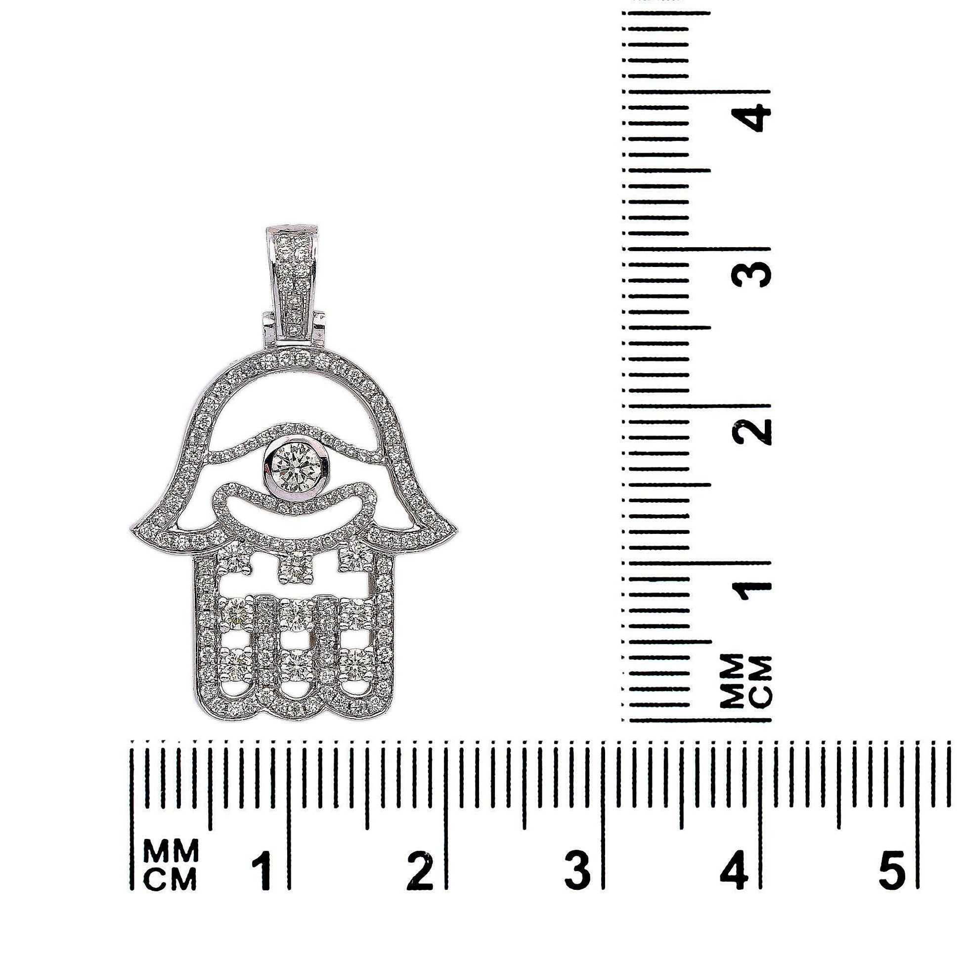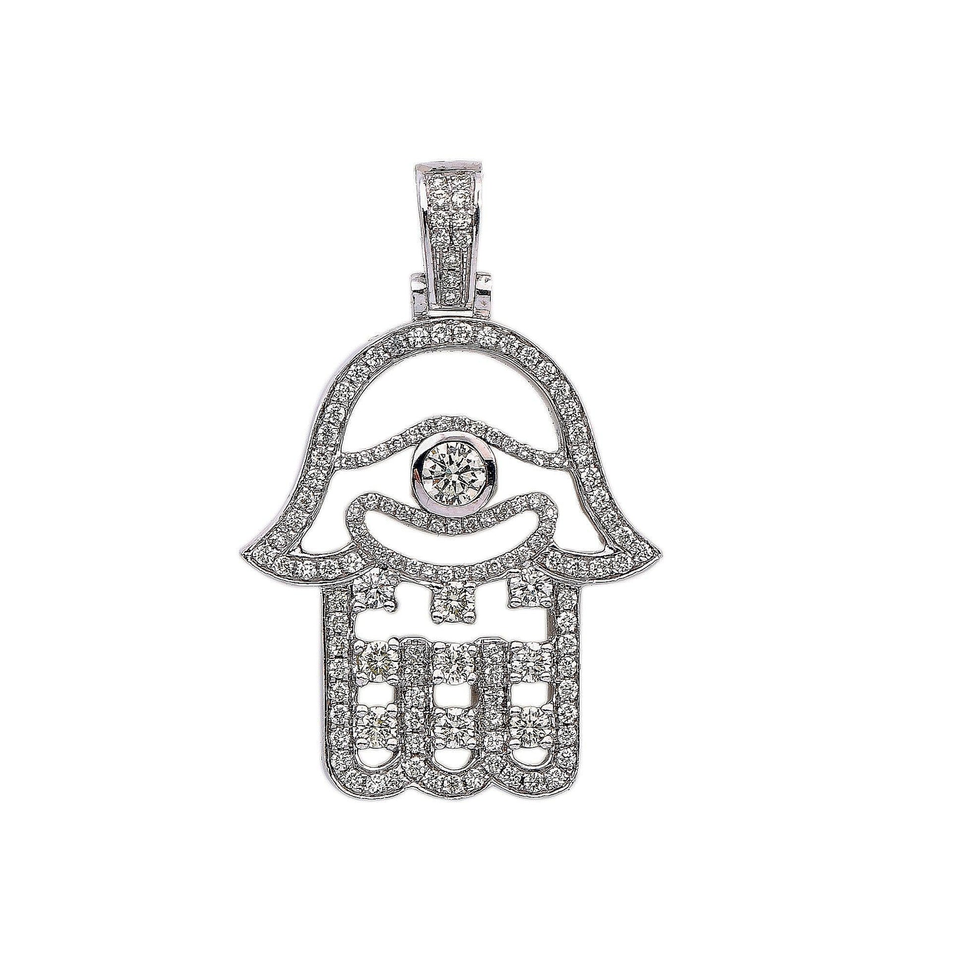 14K White Gold Diamond Hamsa Shaped Pendant