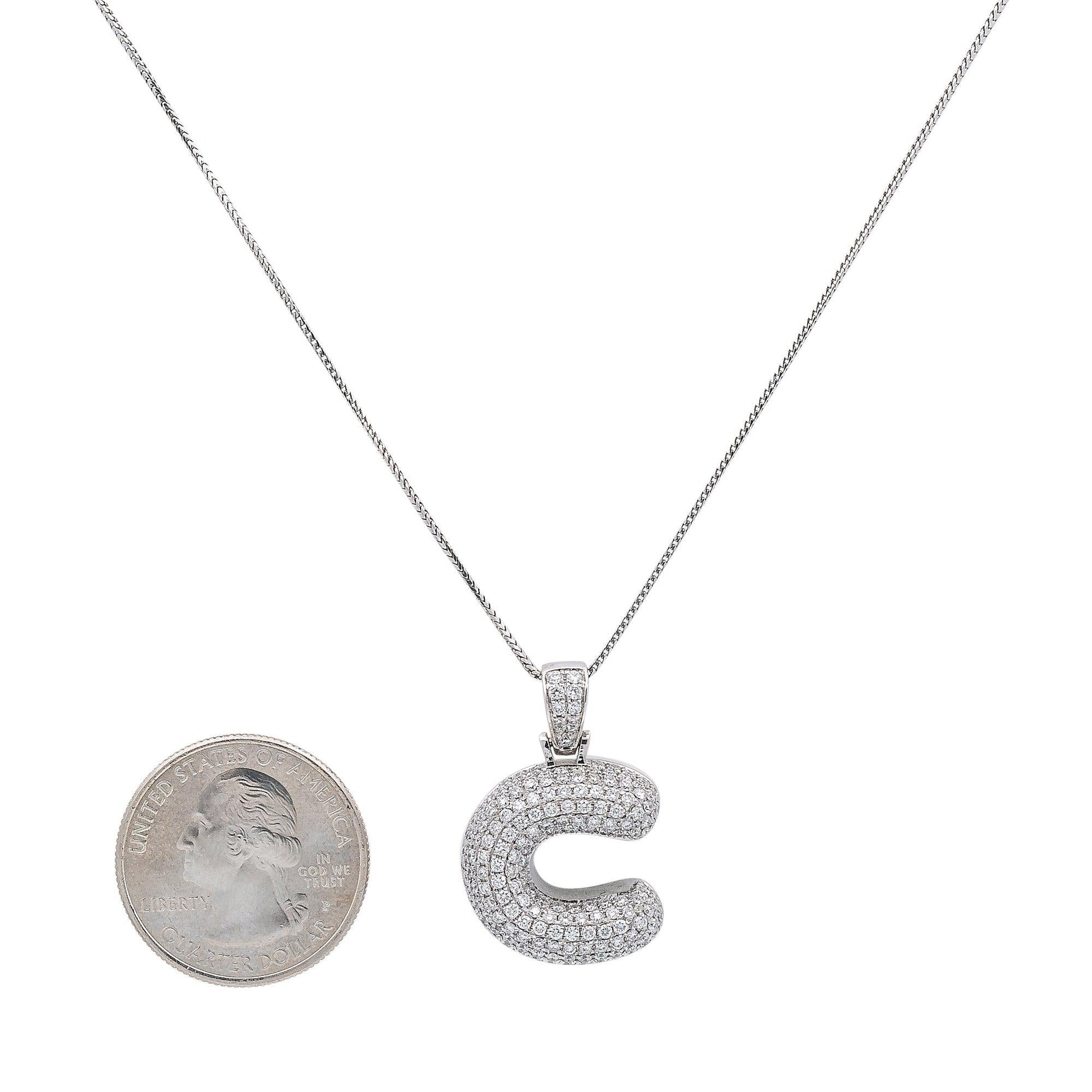 14k White Gold Pendant letter C shaped with 2.35 Ct Diamonds: