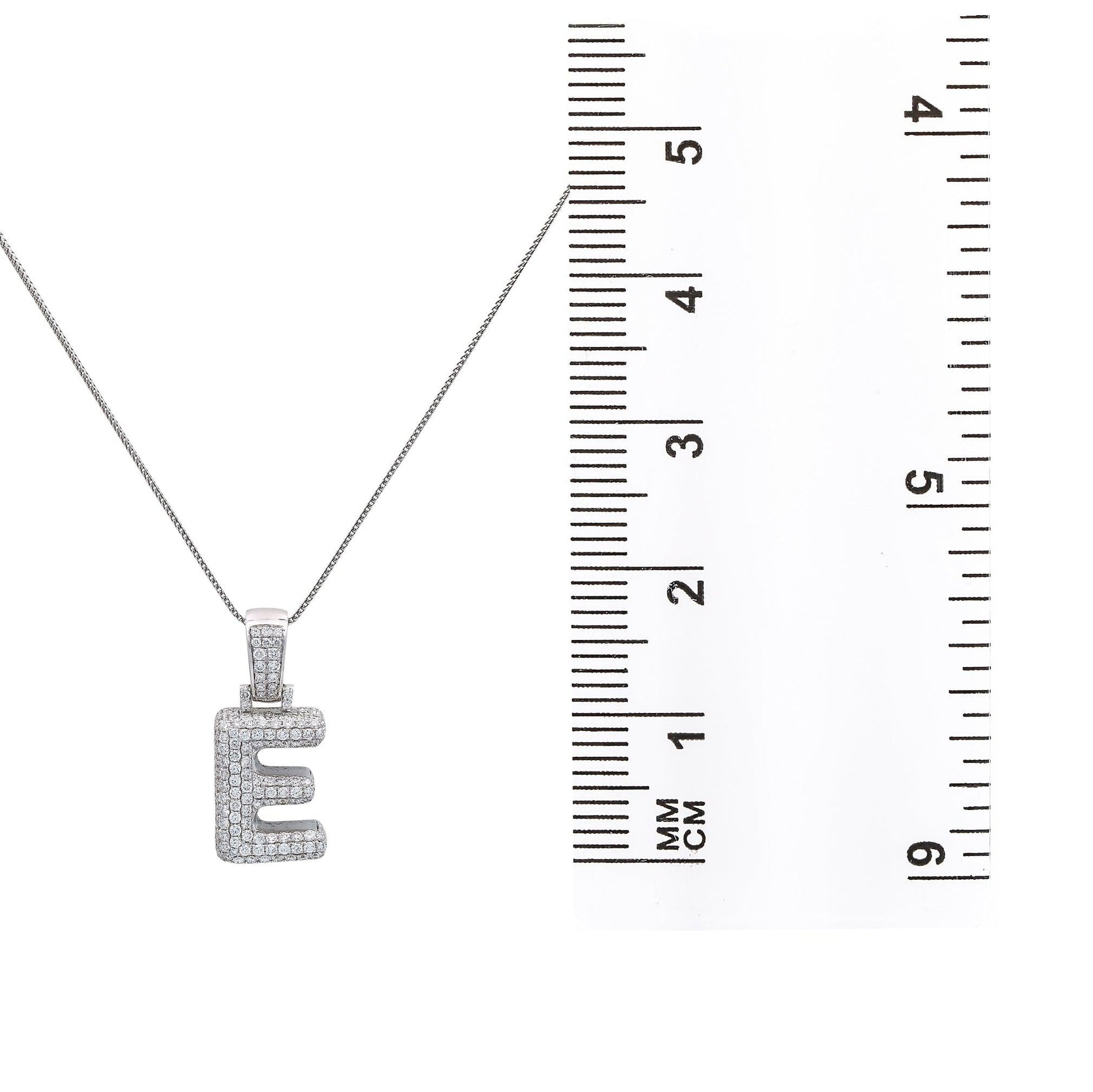 14k White Gold Pendant Necklace letter E shaped with 2.63 Ct Diamonds