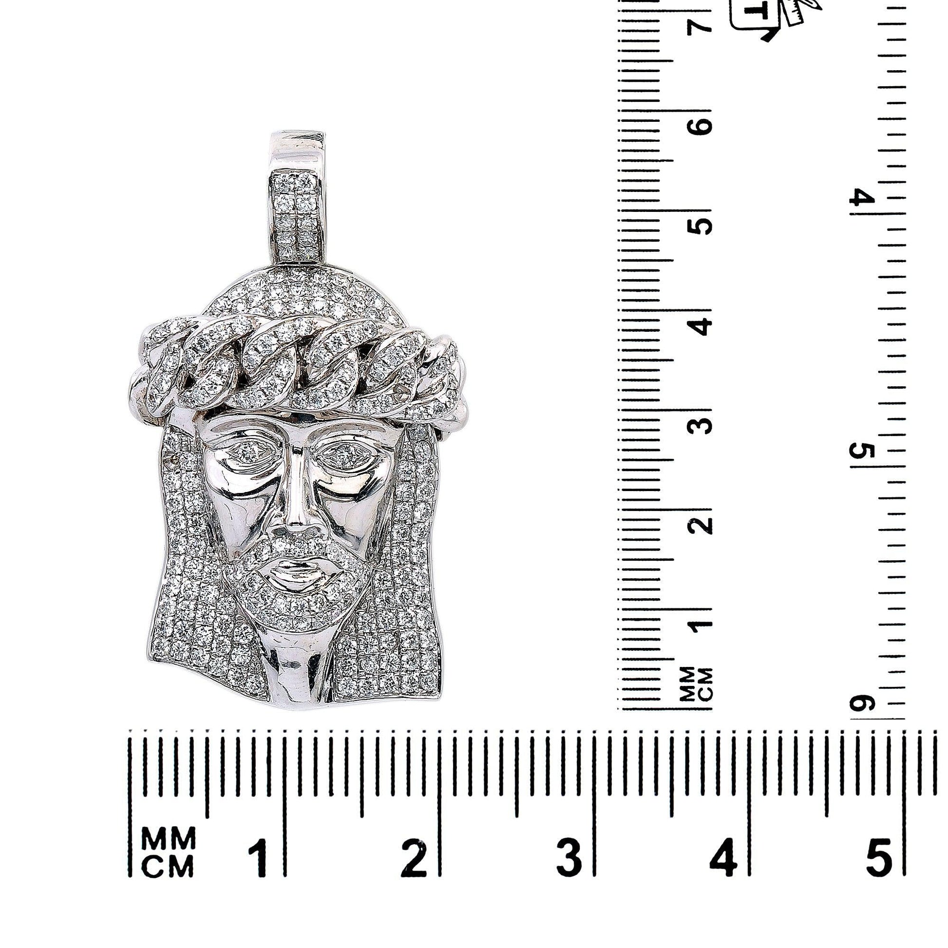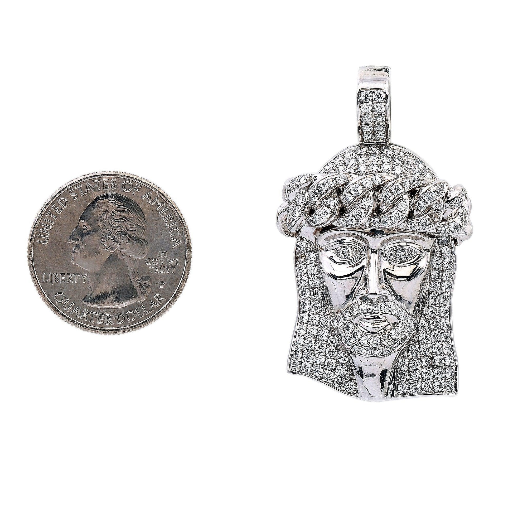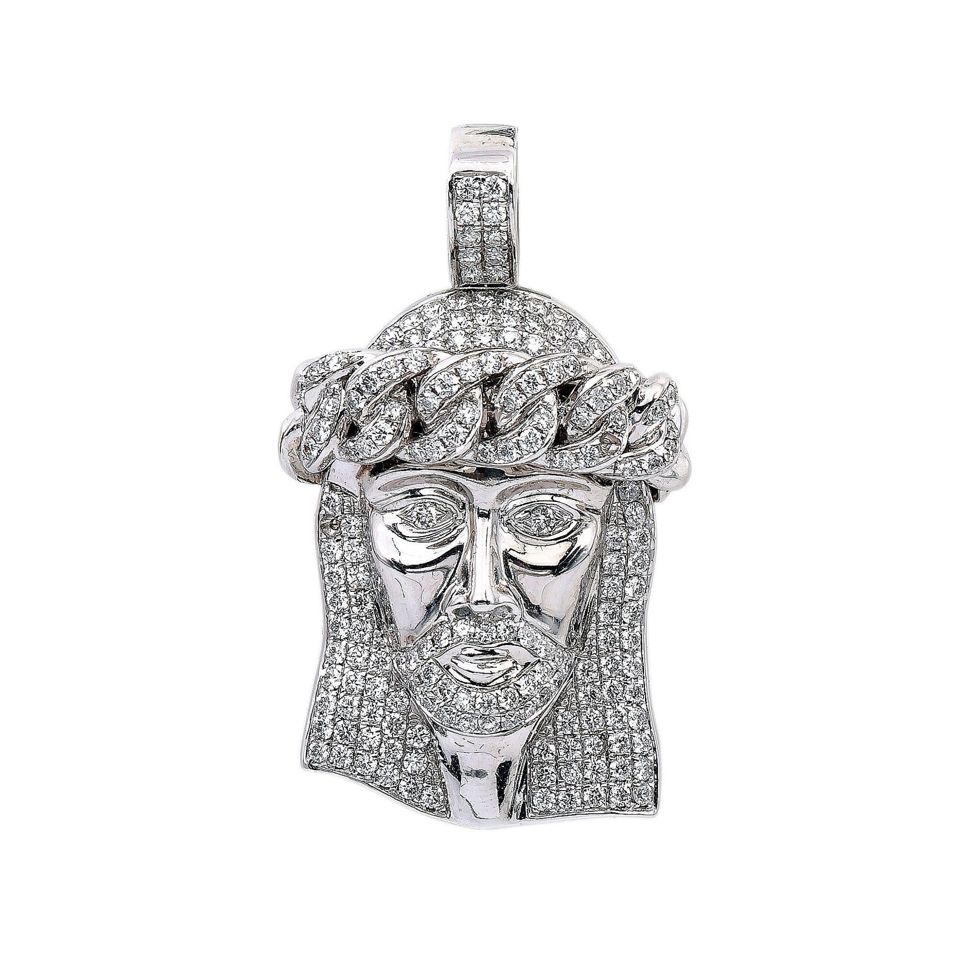 14K White Gold Diamond Jesus Head Shaped Pendant