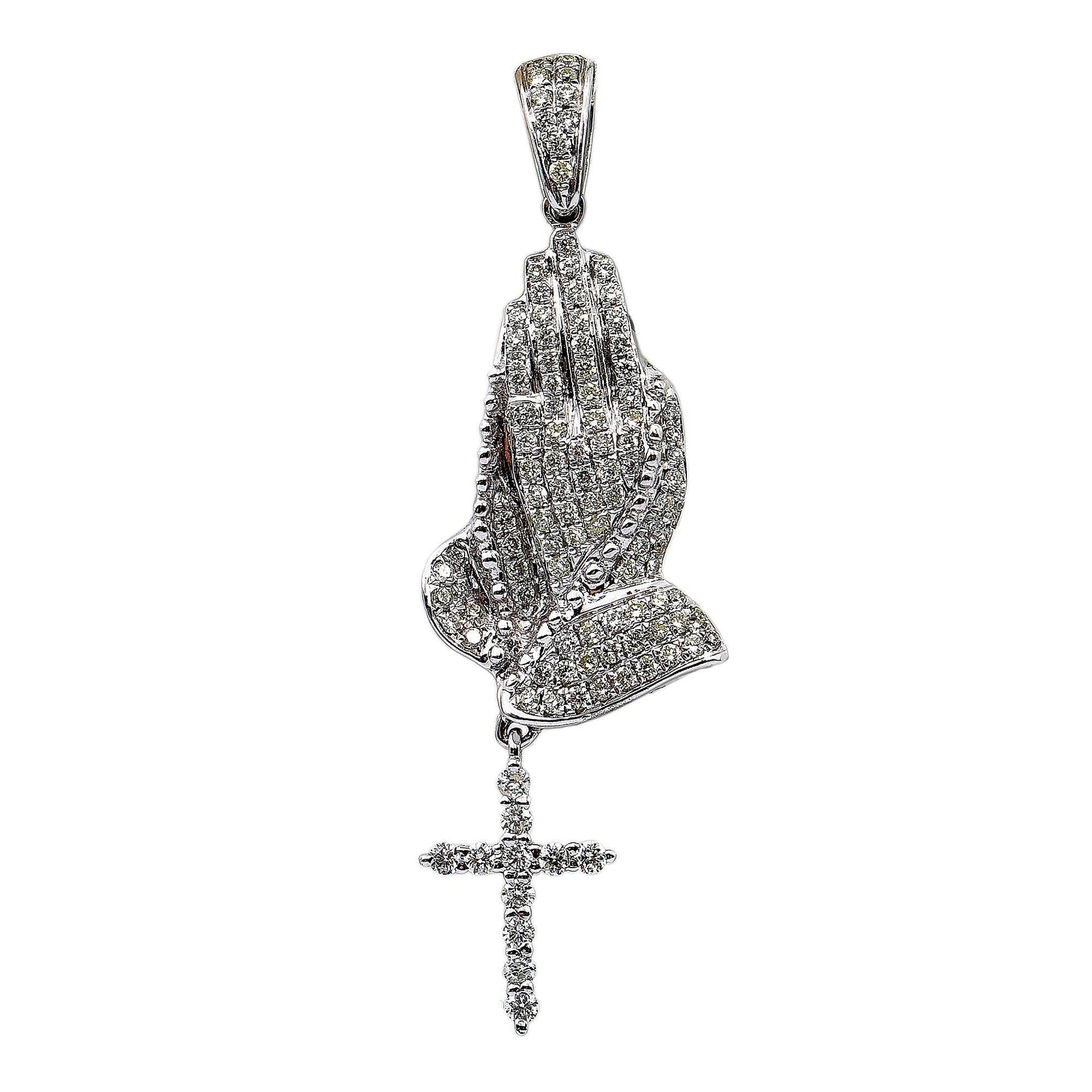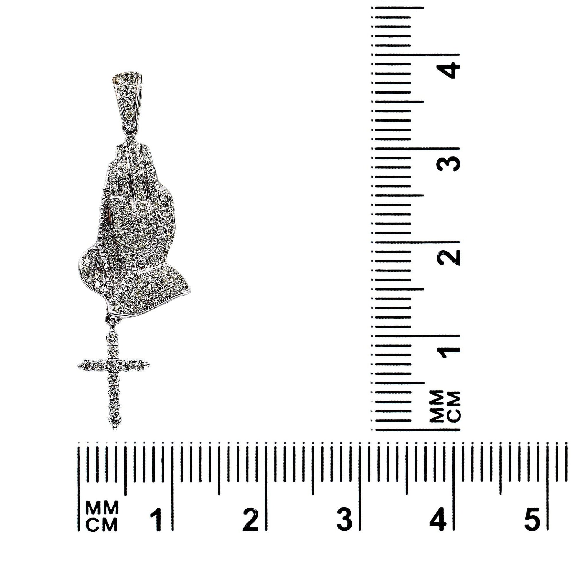14K White Gold Diamond Praying Hands Shaped Pendant
