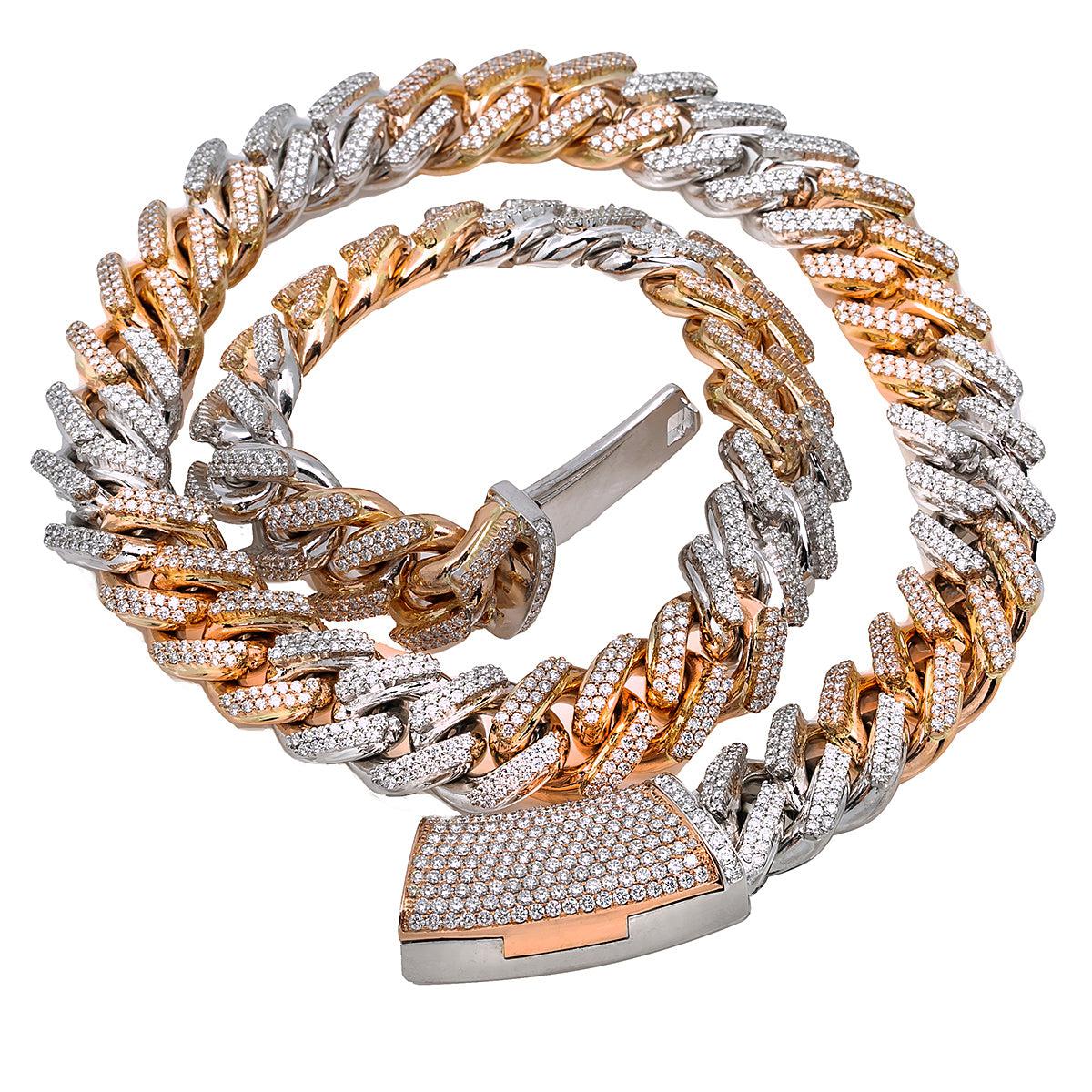 14K GOLD TWO TONE CUBAN CHAIN 25.62 CT DIAMONDS