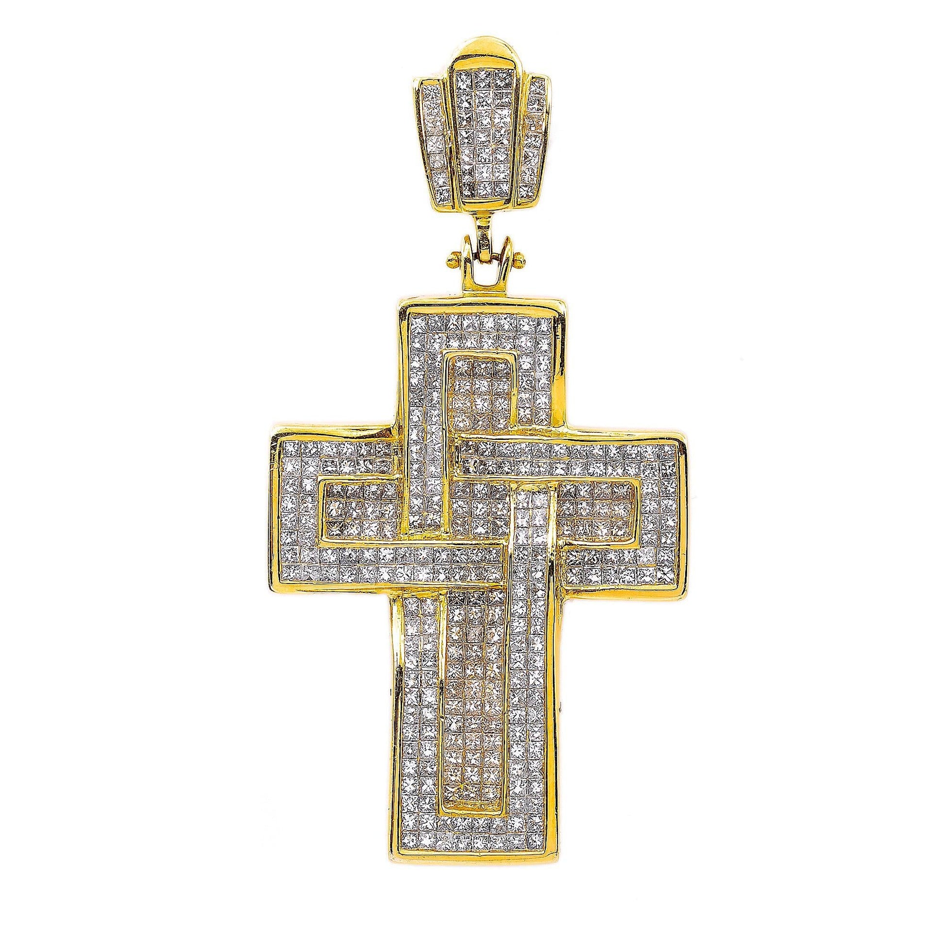 14K Yellow Gold Diamond Cross Shaped Pendant
