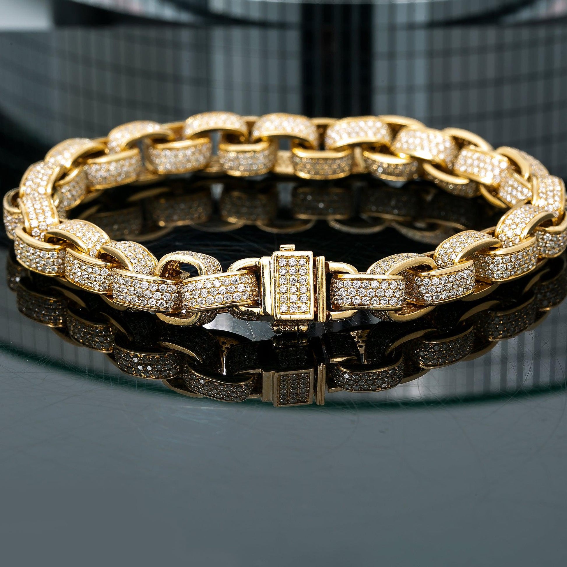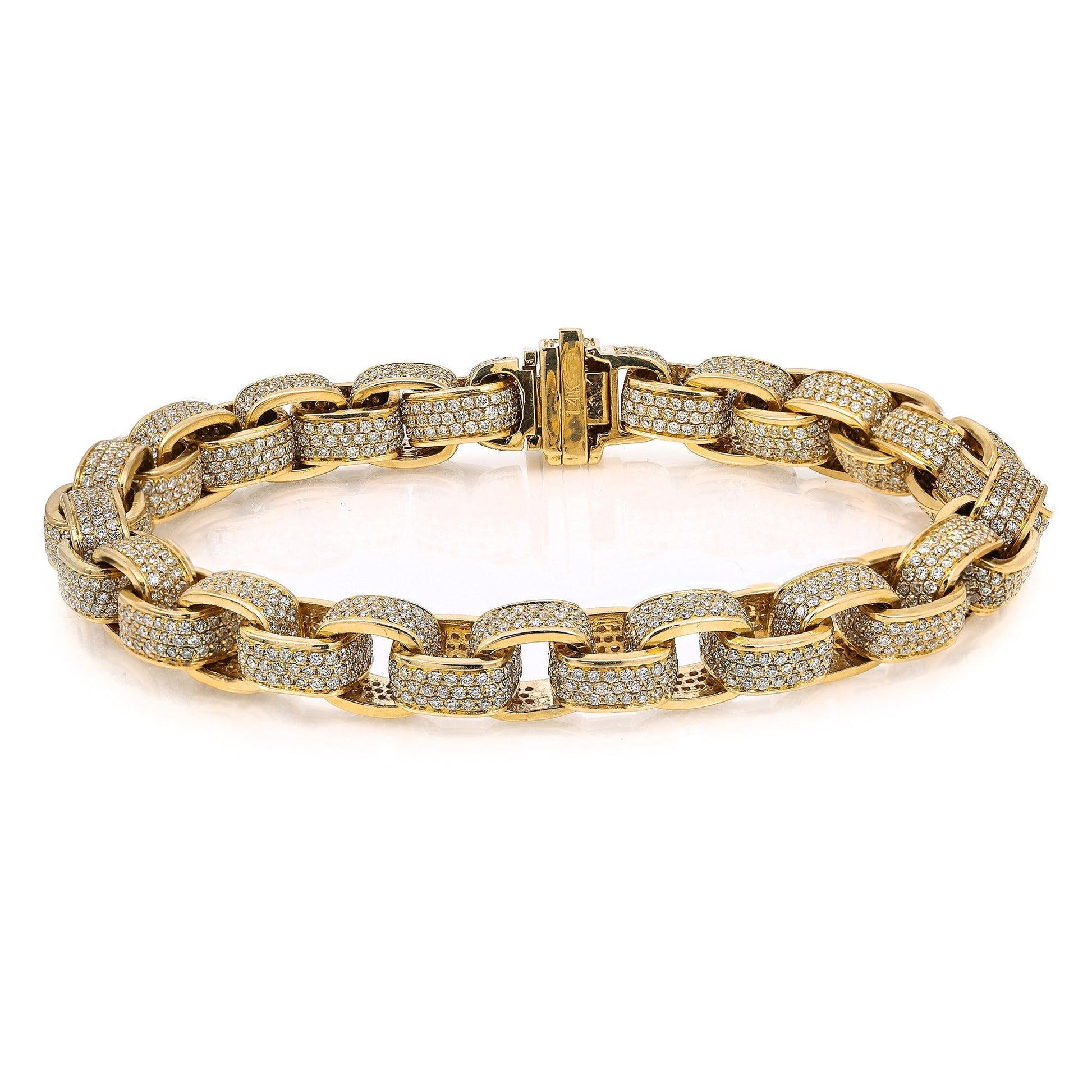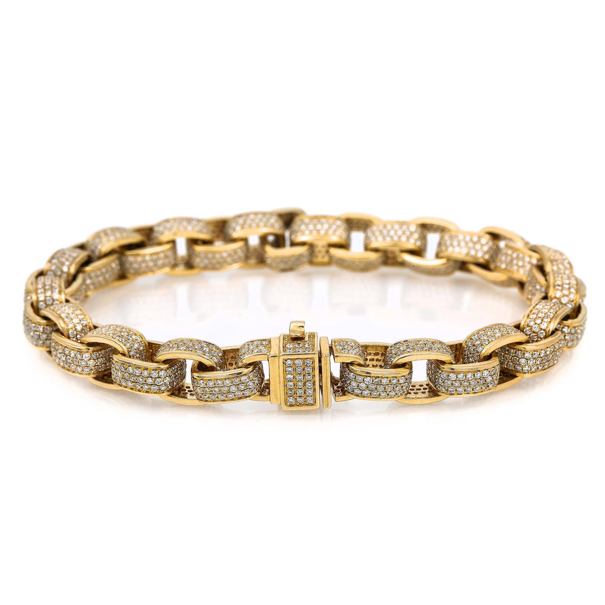 14K Yellow Gold Men's Custom Diamond Bracelet With 13.06 CT Diamonds