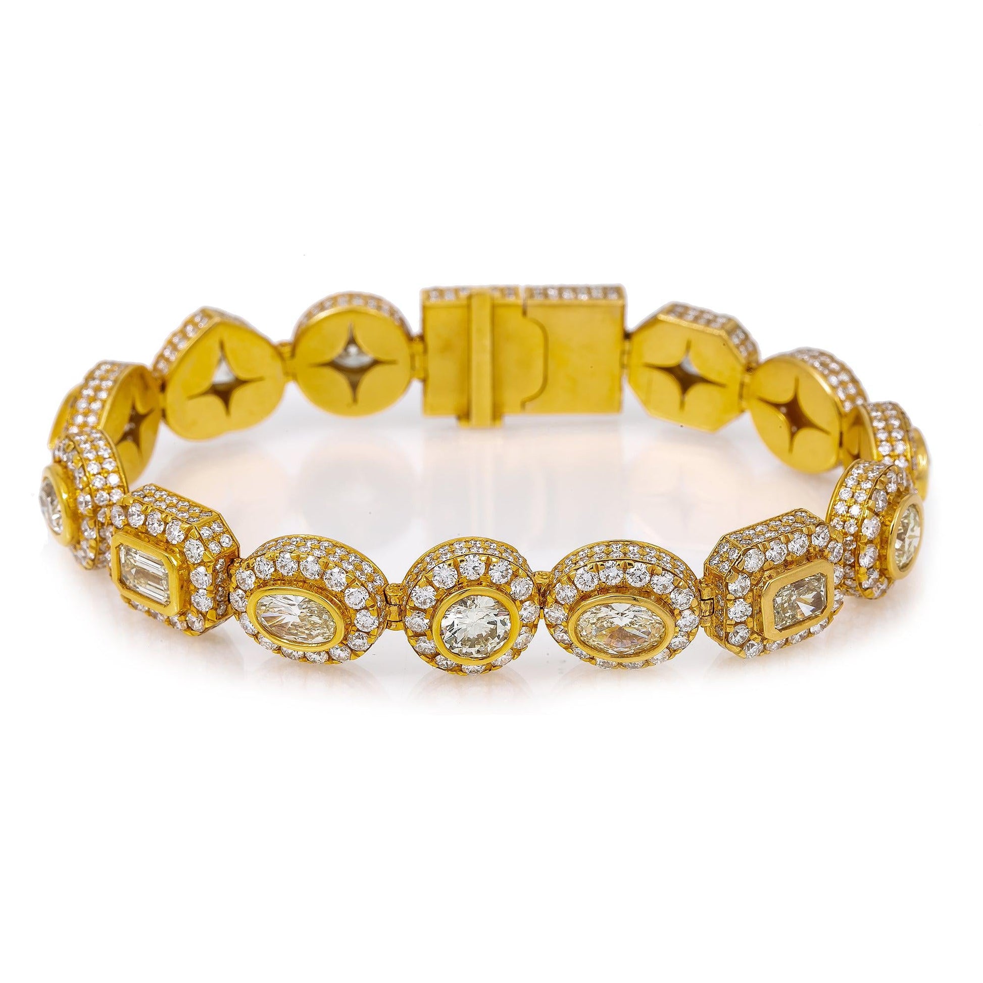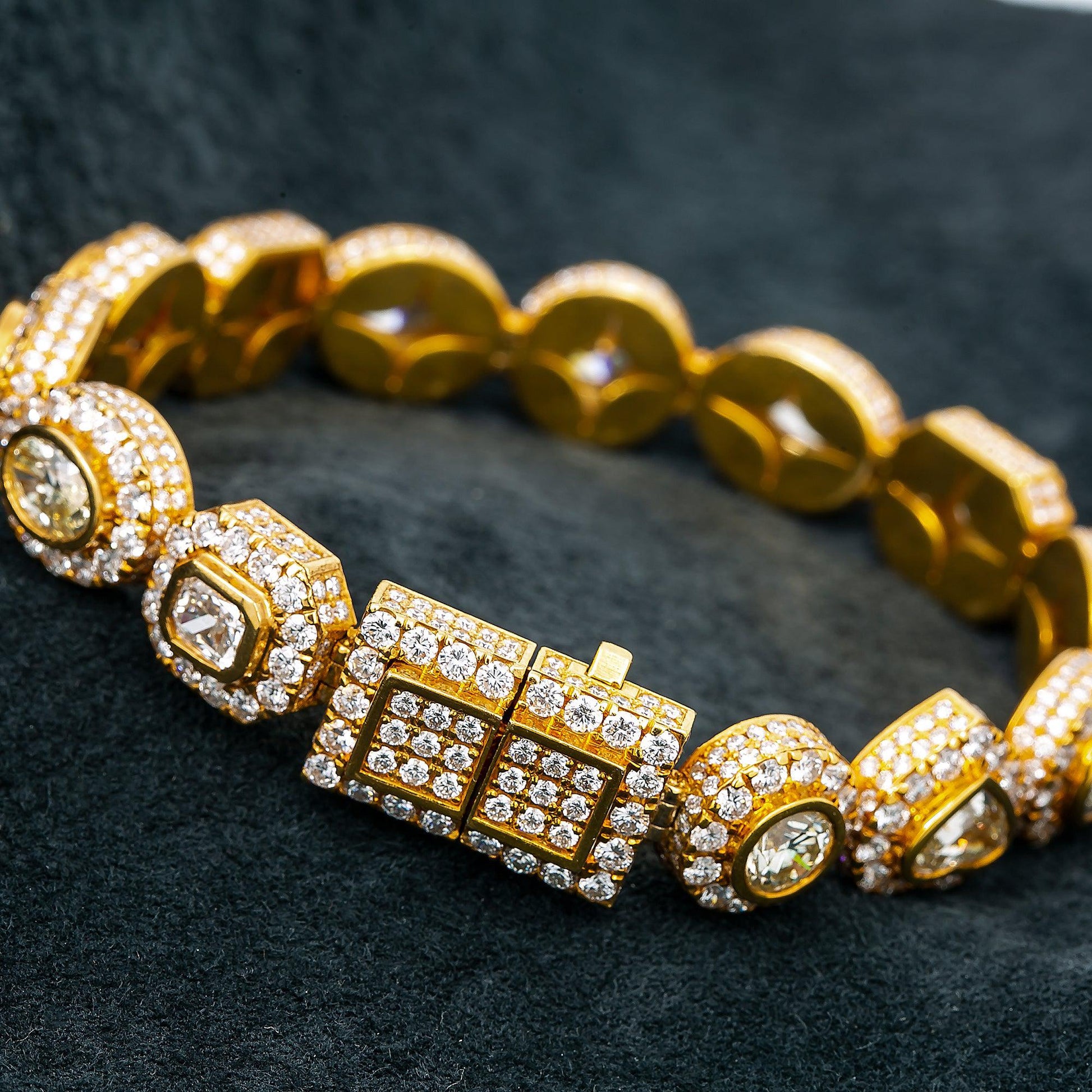 14K Yellow Gold Men's Custom Diamond Bracelet With 34.69 CT Diamonds