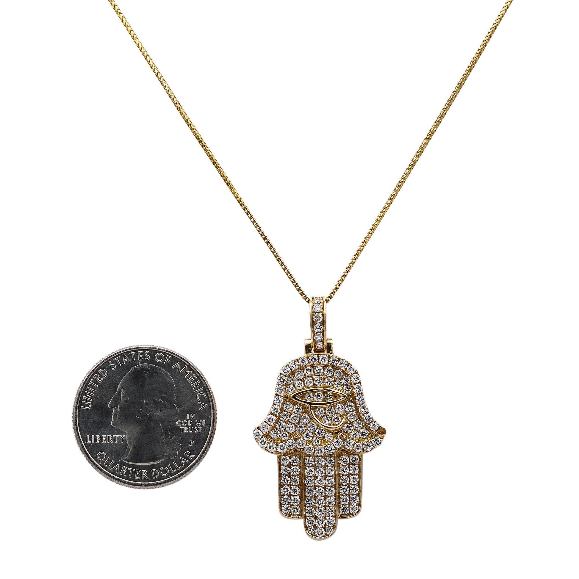 14k Yellow Gold Hamsa Pendant with 2.05 Ct Diamonds