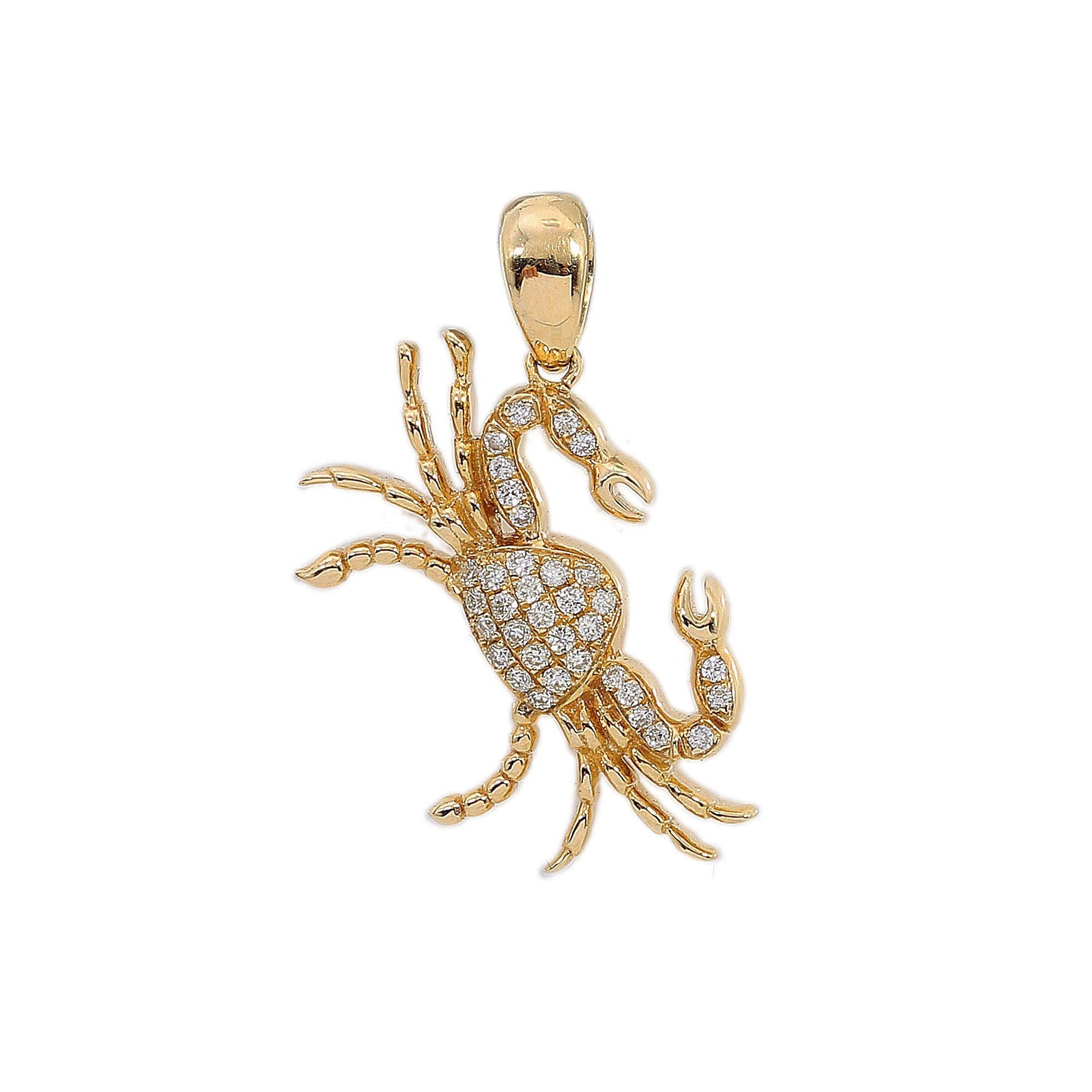 14K Yellow Gold Diamond Cancer Shaped Pendant