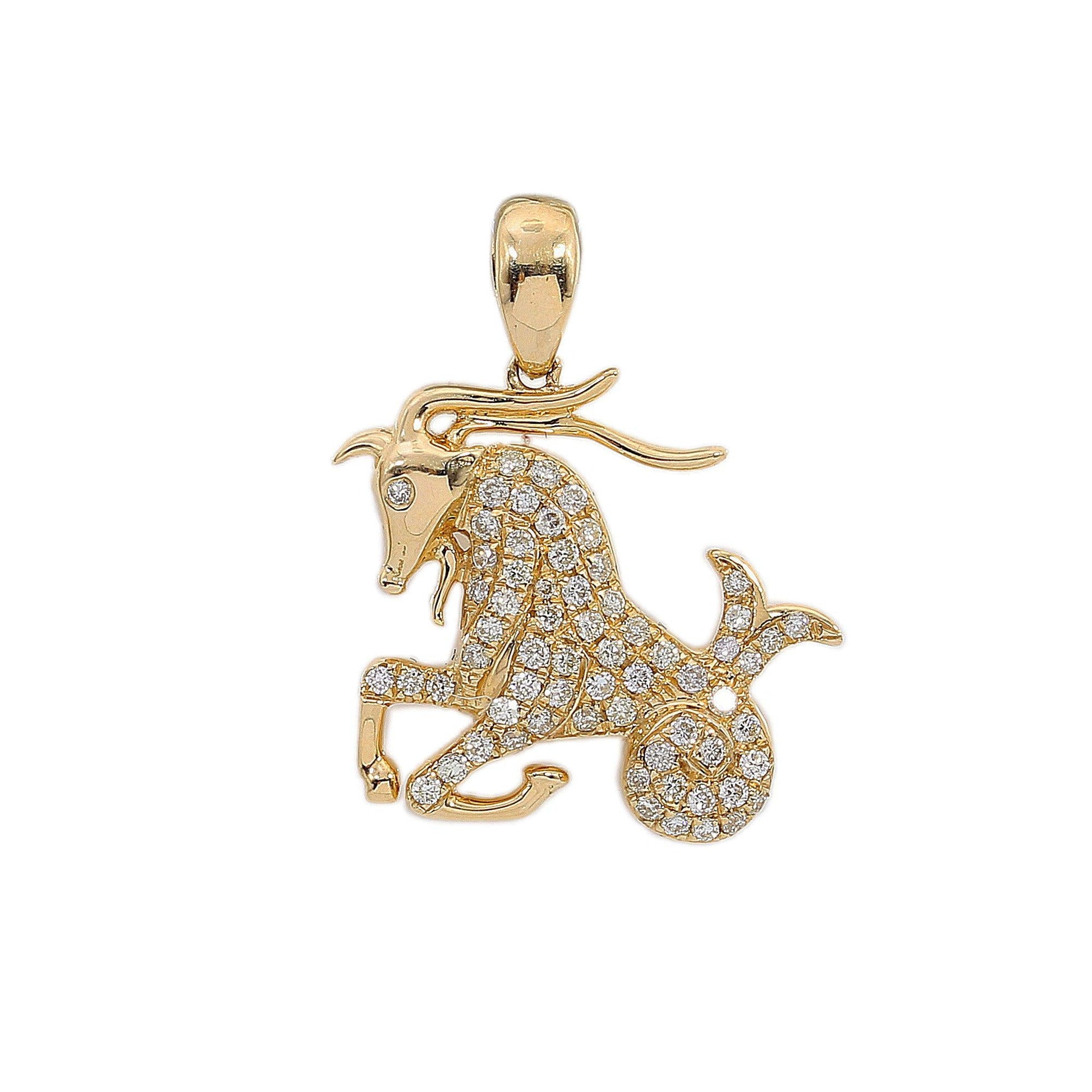 14K YELLOW GOLD DIAMOND CAPRICORN PENDANT 0.48 CT