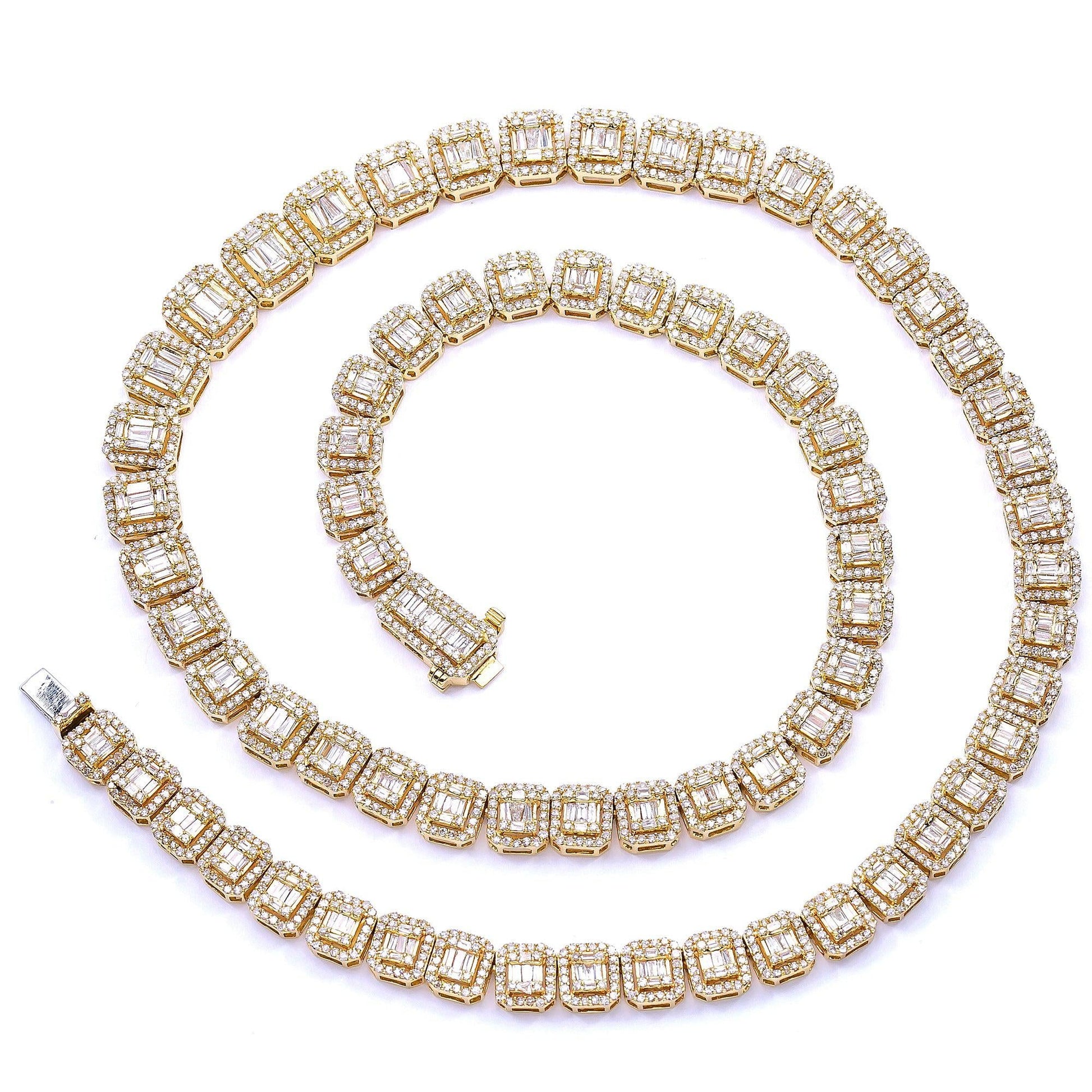 14K YELLOW GOLD UNISEX DIAMOND CHAIN WITH 16.80 CT BAGUETTE DIAMONDS