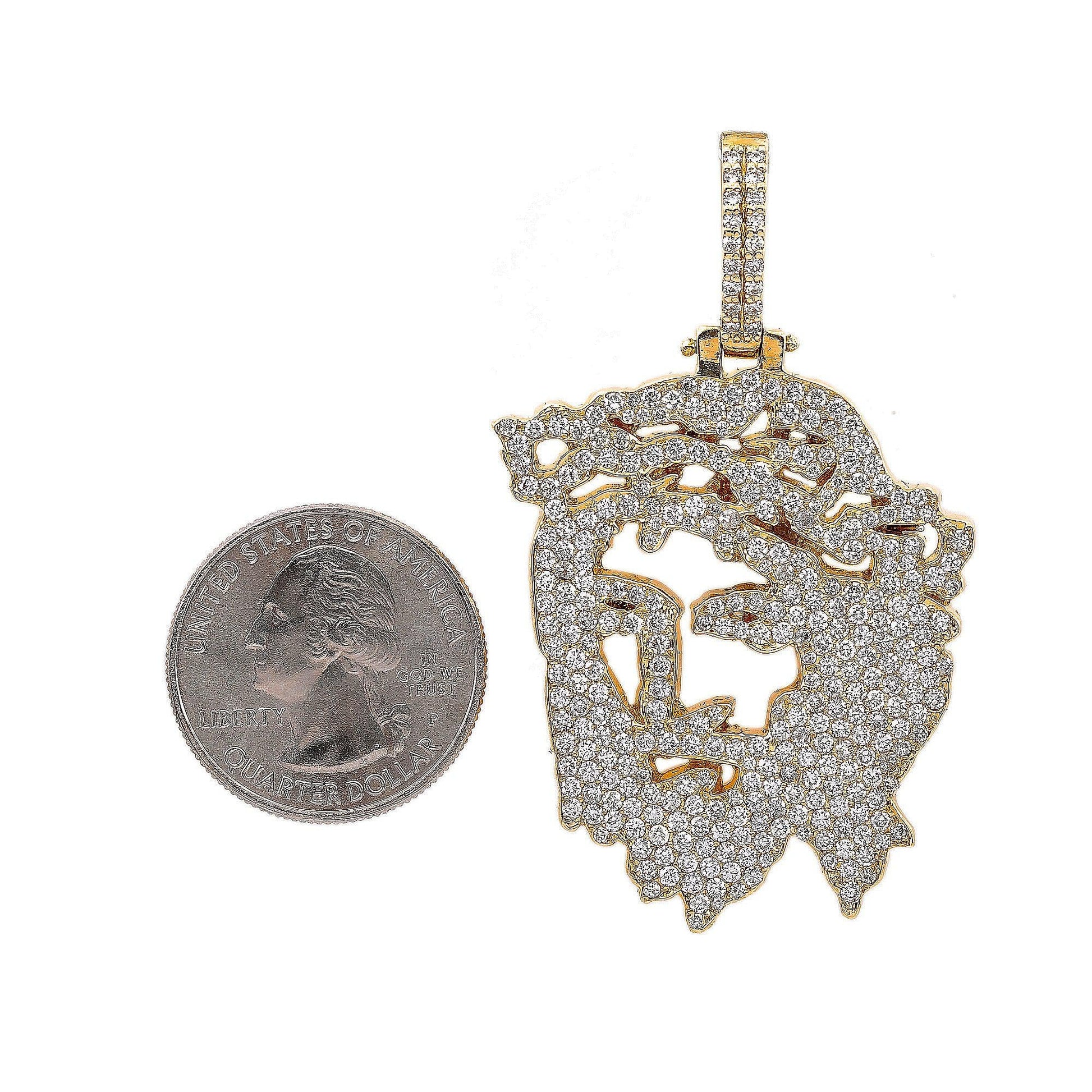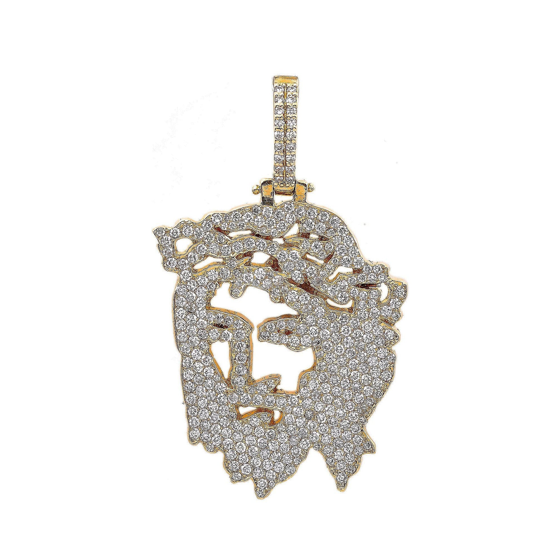 14K Yellow Gold Diamond Jesus Head Shaped Pendant