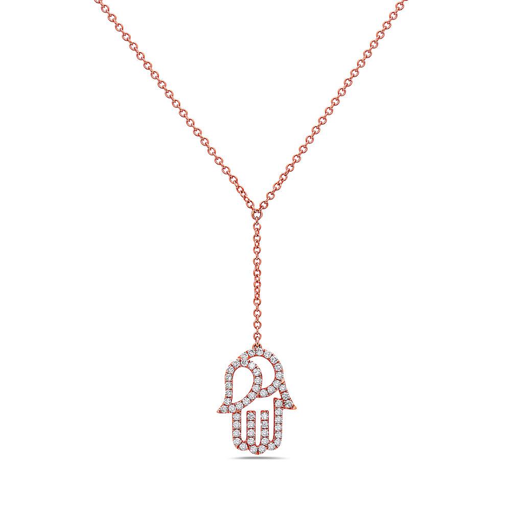 18K Rose Gold "Hamsa" Women's Necklace With 0.65 CT Diamonds