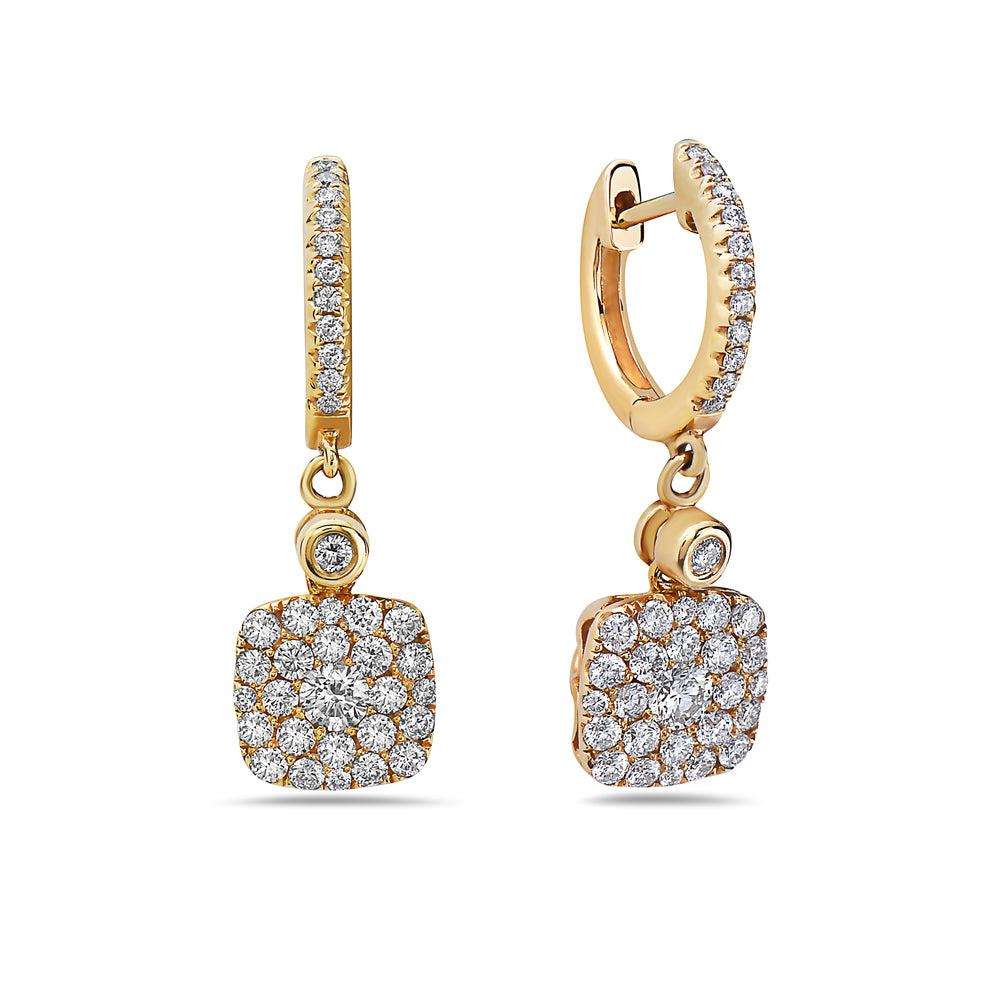 18K Yellow Gold Ladies Earrings With 1.04 CT Diamonds