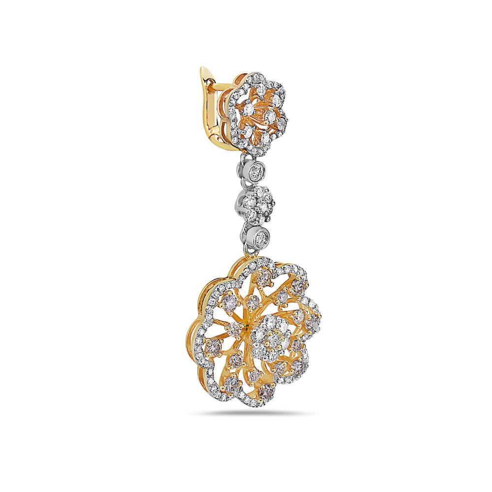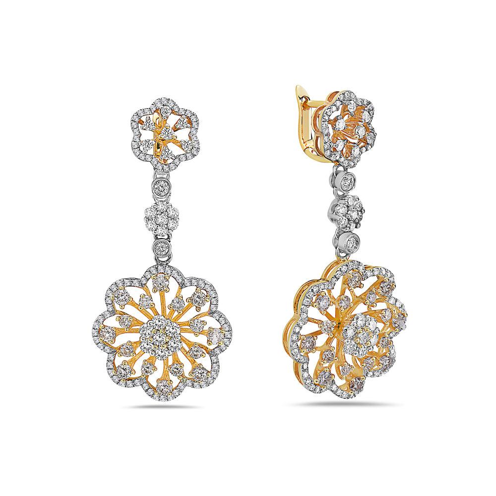 18K Yellow Gold Ladies Earrings With 2.98 CT Diamonds