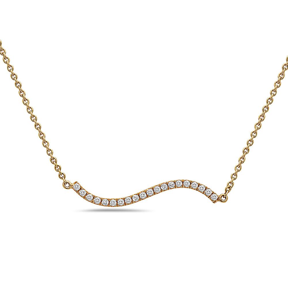 18K Yellow Gold Wave Women's Necklace With 0.18 CT Diamonds