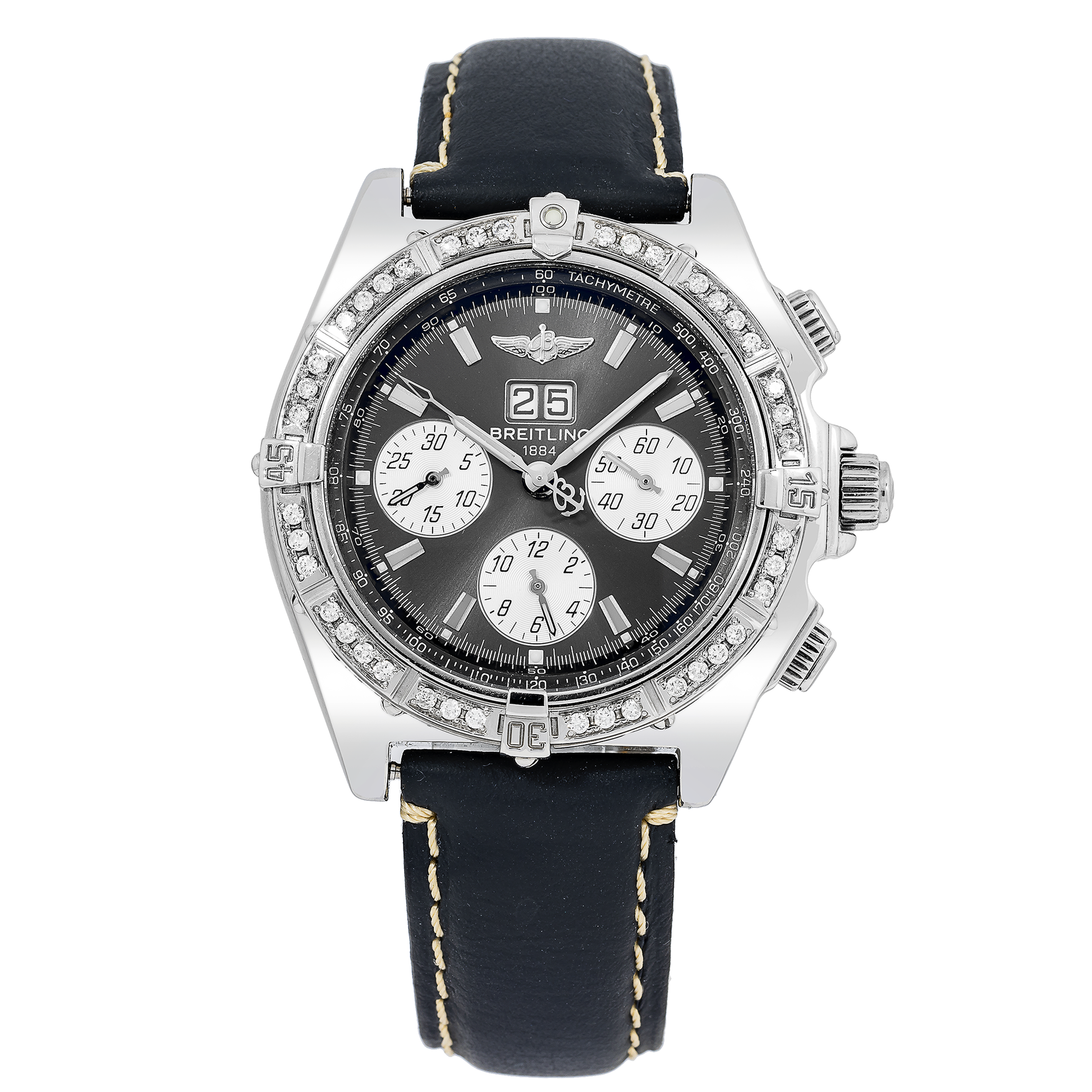 Breitling Blackbird A44358 44MM Black Dial With Leather Bracelet.