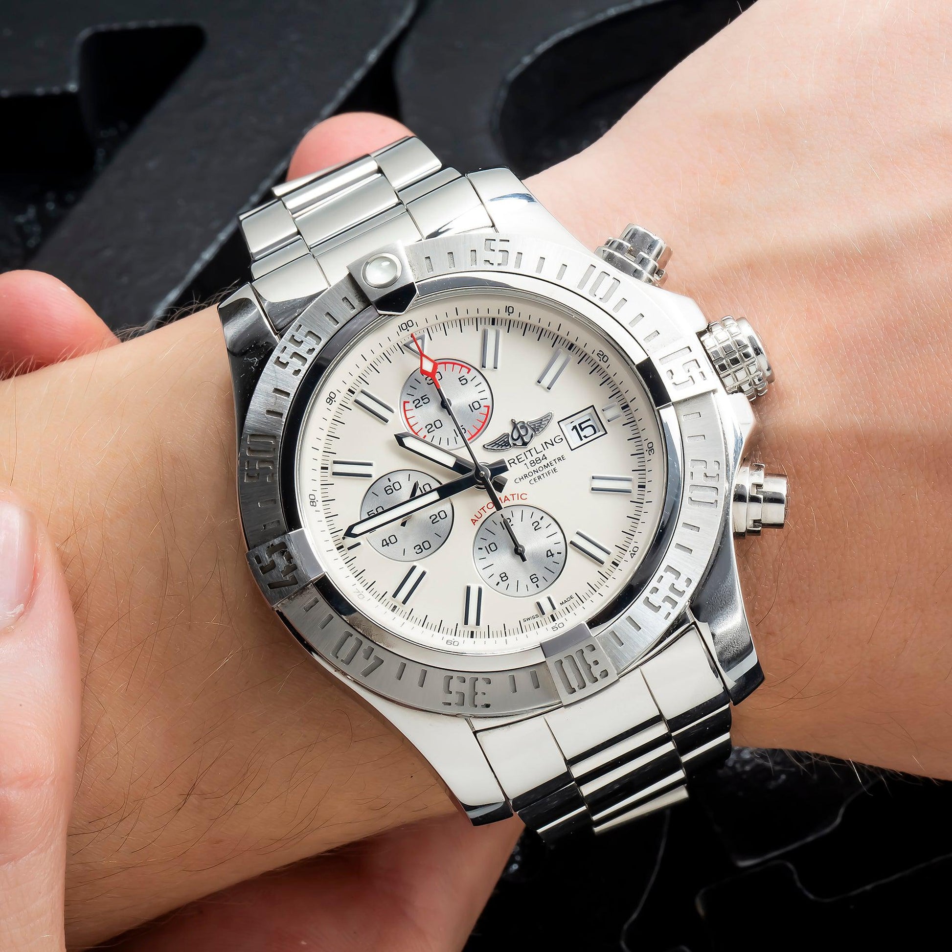 Breitling Super Avenger II A13371 48MM White Dial With Stainless Steel Bracelet