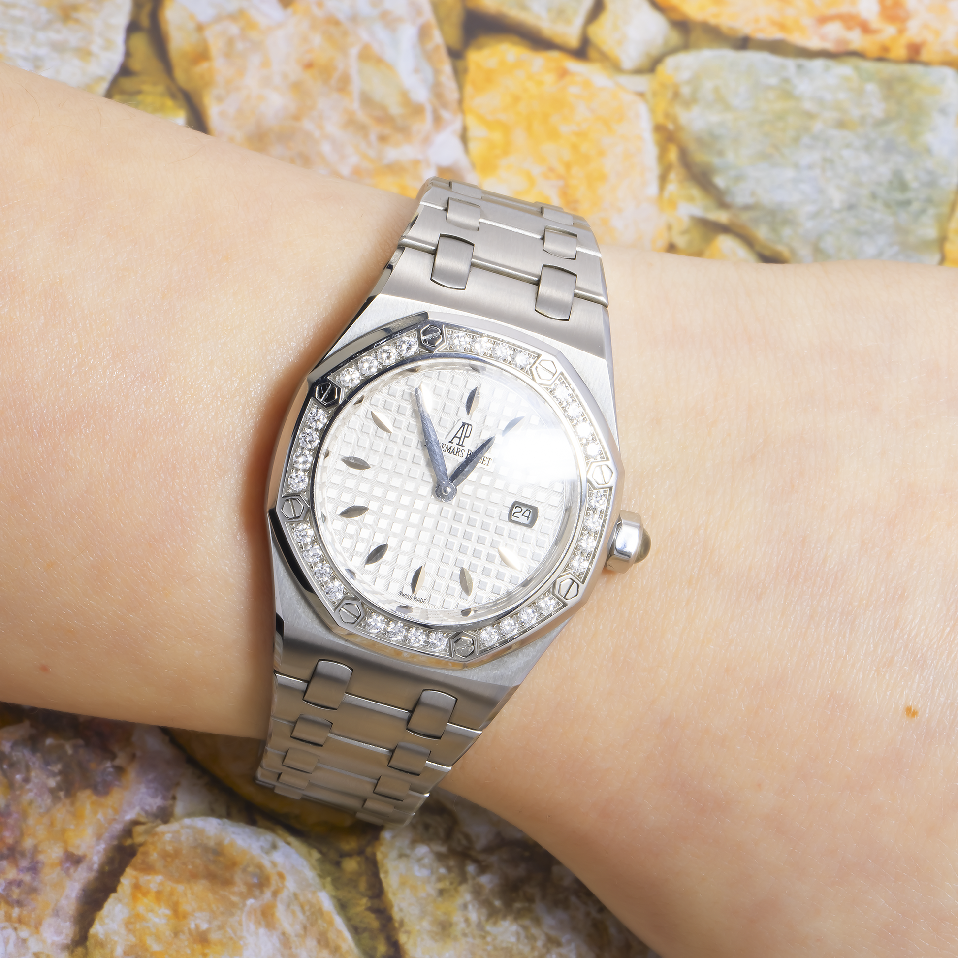 Audemars Piguet Royal Oak Quartz Ladies 33mm Stainless Steel Silver Dial Diamond Bezel 67651ST.ZZ.1261ST.01