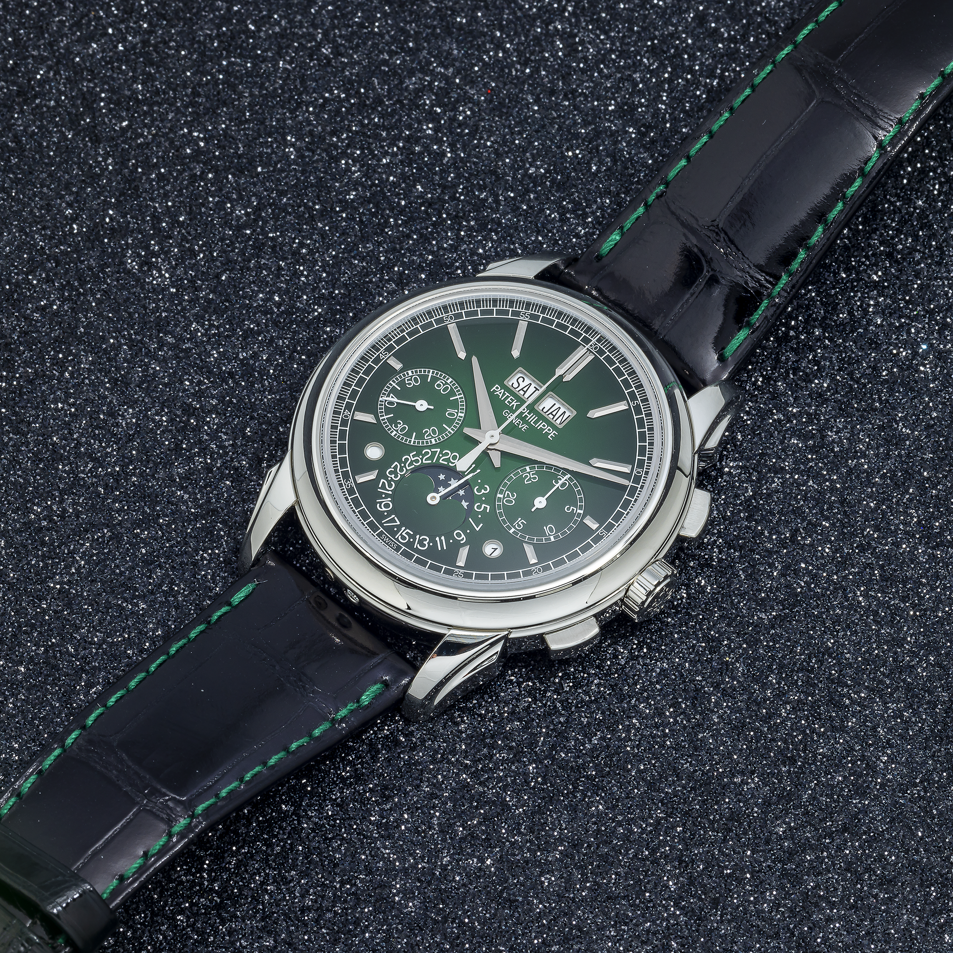 PATEK PHILIPPE GRAND COMPLICATIONS CHRONOGRAPH PERPETUAL CALENDAR GREEN DIAL 5270P WITH LEATHER STRAP