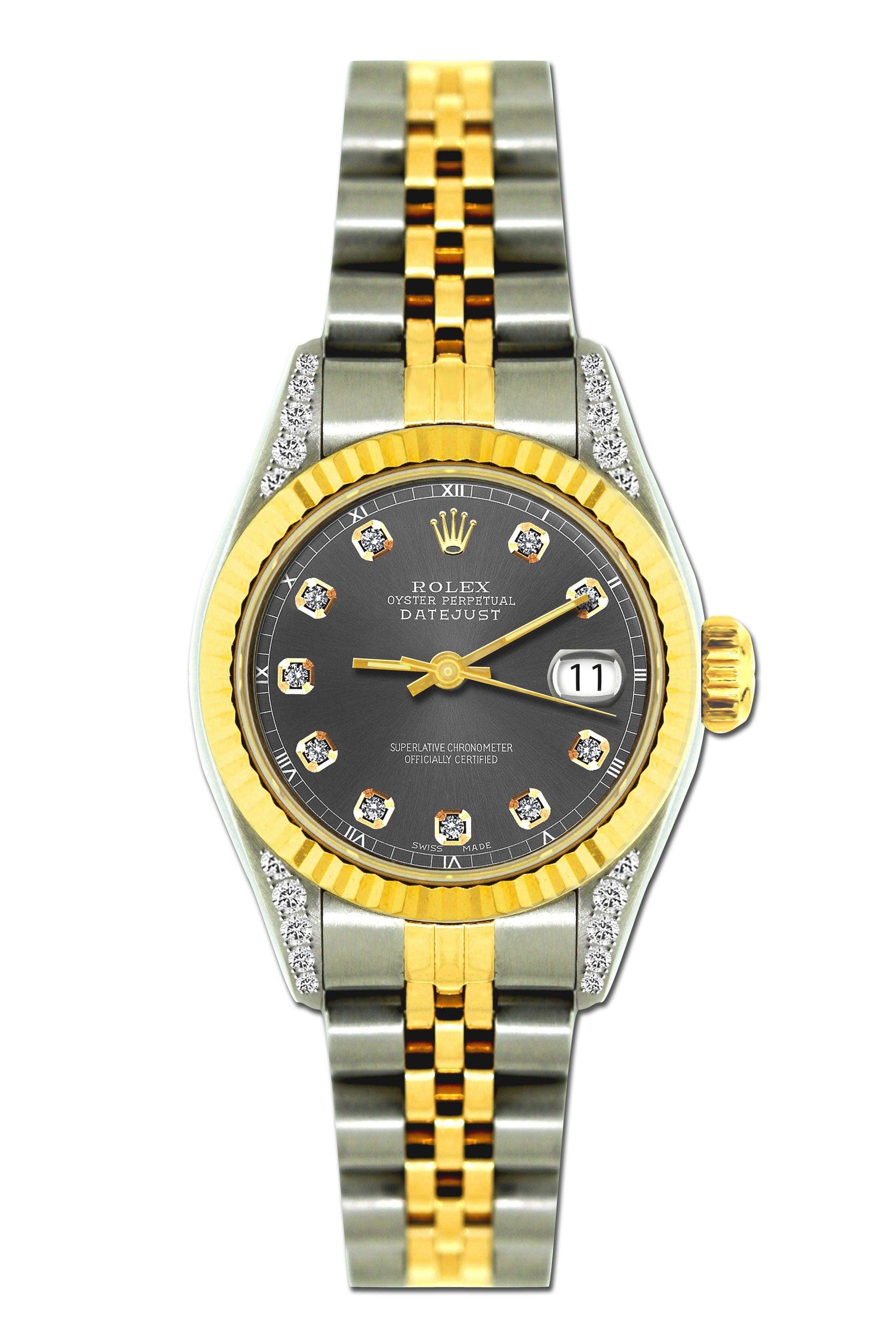Rolex Datejust Diamond Watch, 26mm, Yellow Gold and Stainless Steel Bracelet Gray Dial w/ Diamond Lugs