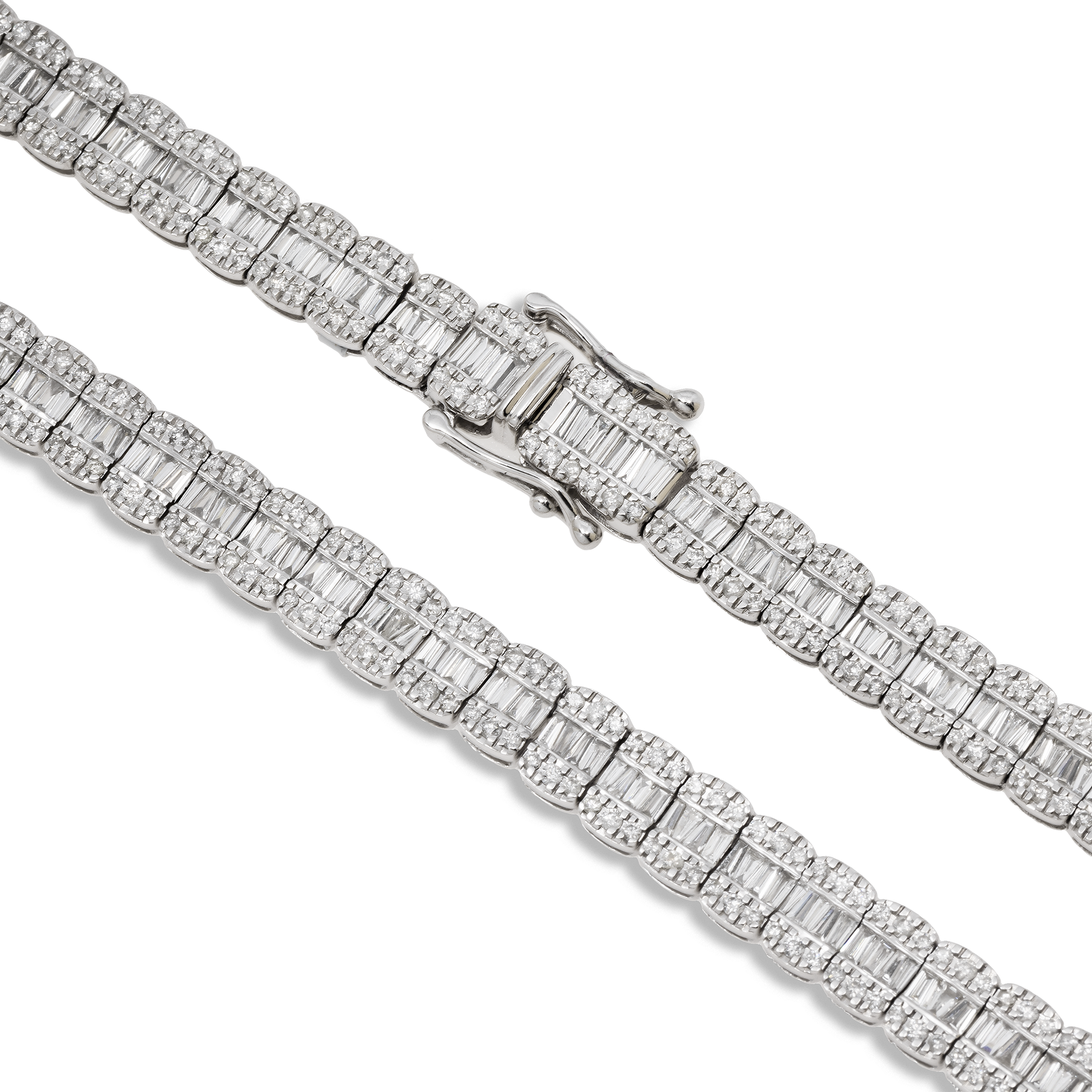 10K GOLD 7MM BAGUETTE AND ROUND DIAMOND CHAIN 13.69 CT