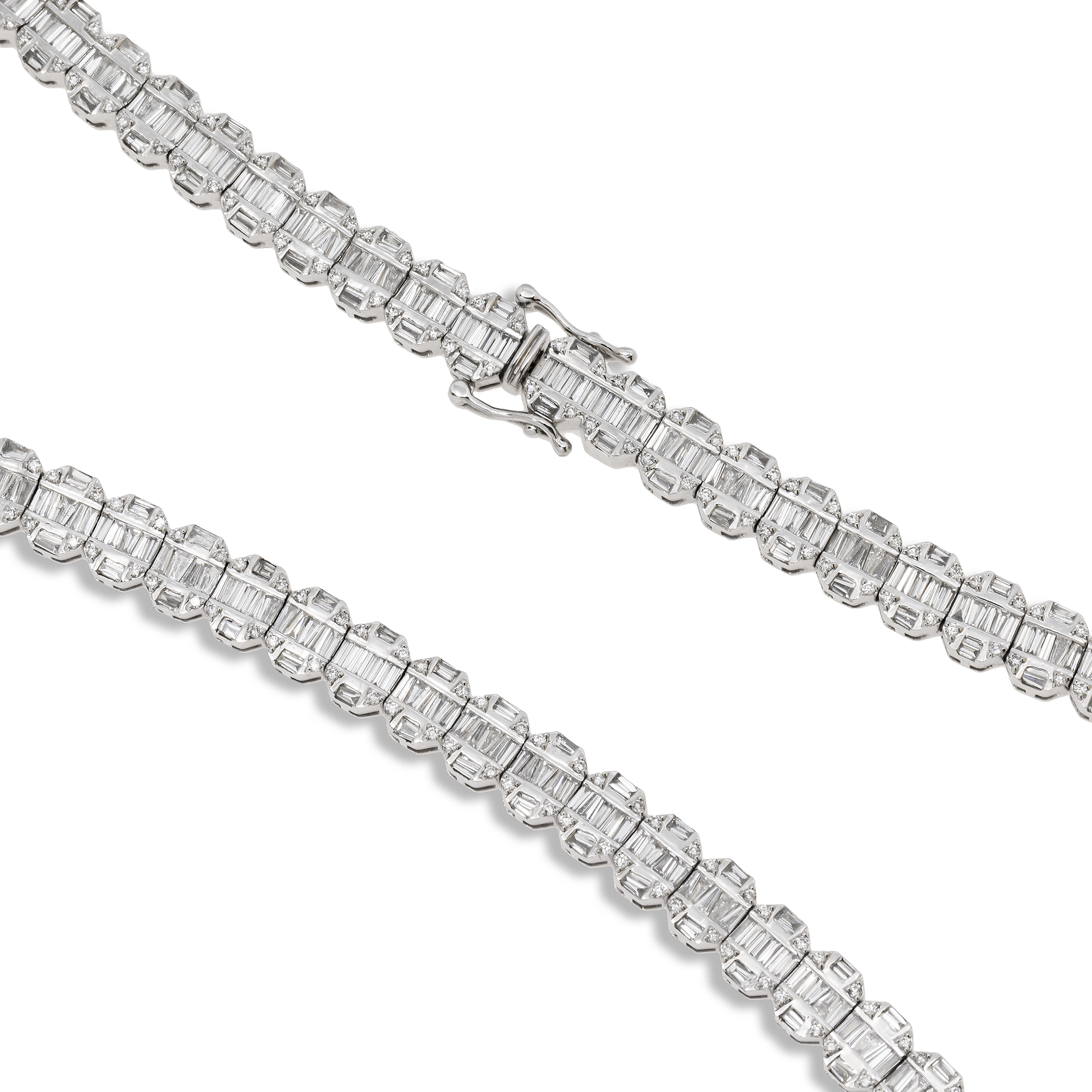 10K GOLD 7.5MM BAGUETTE DIAMOND CHAIN 17.30 CT