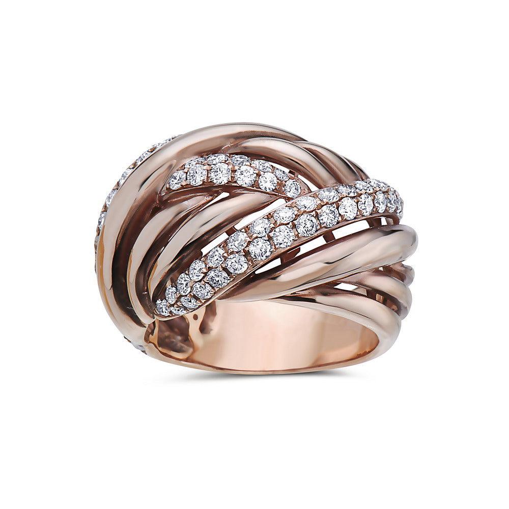18K ROSE GOLD BRILLIANT ROUND CUT PAVE DIAMOND RIGHT HAND TWIST RING 1.46 CT