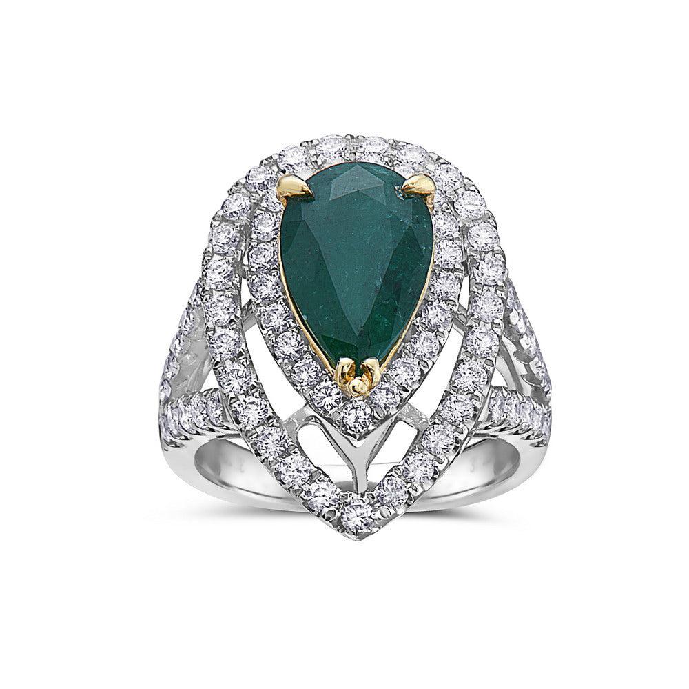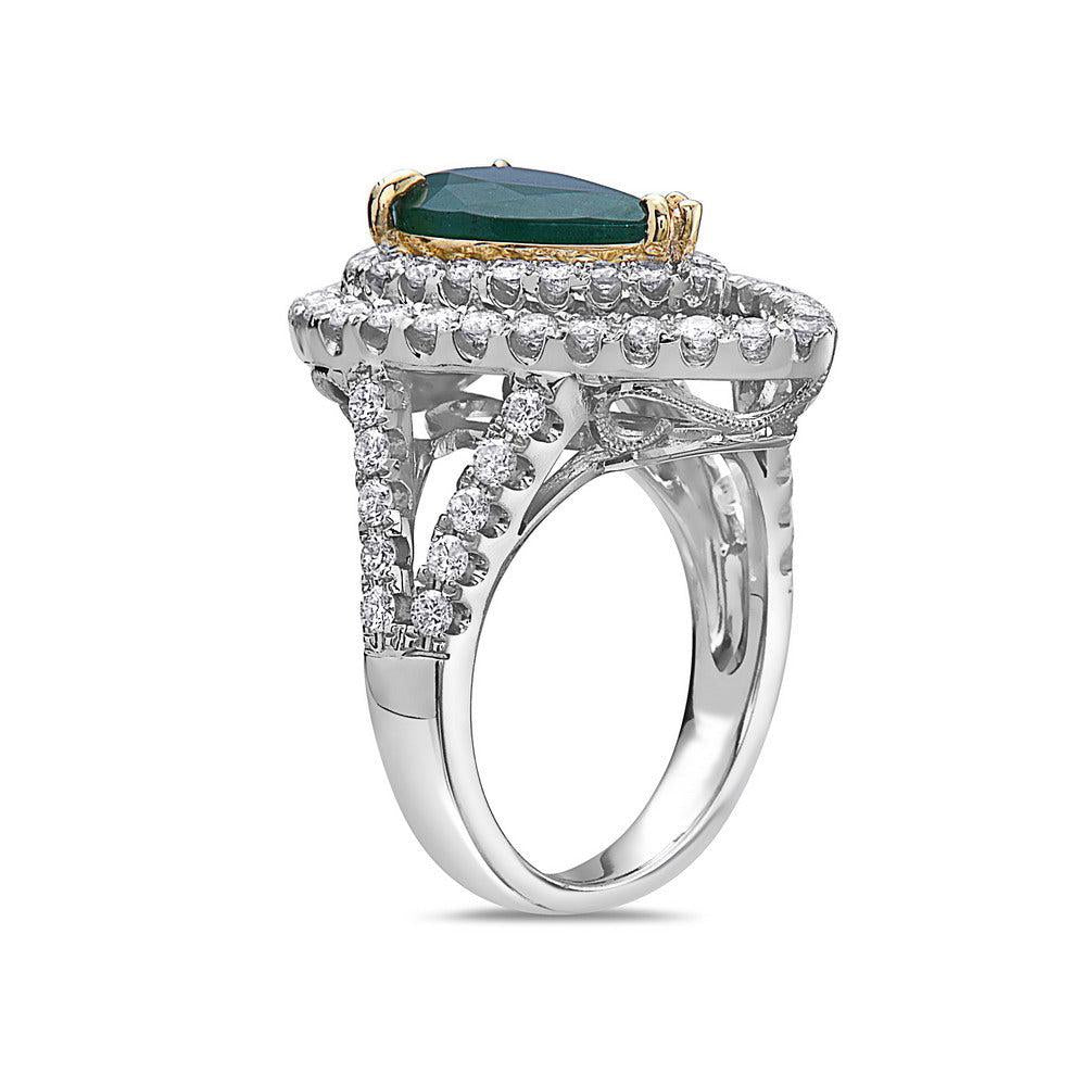 18K WHITE GOLD DIAMOND AND EMERALD GEMSTONE FASHION RING 4.74 CTW