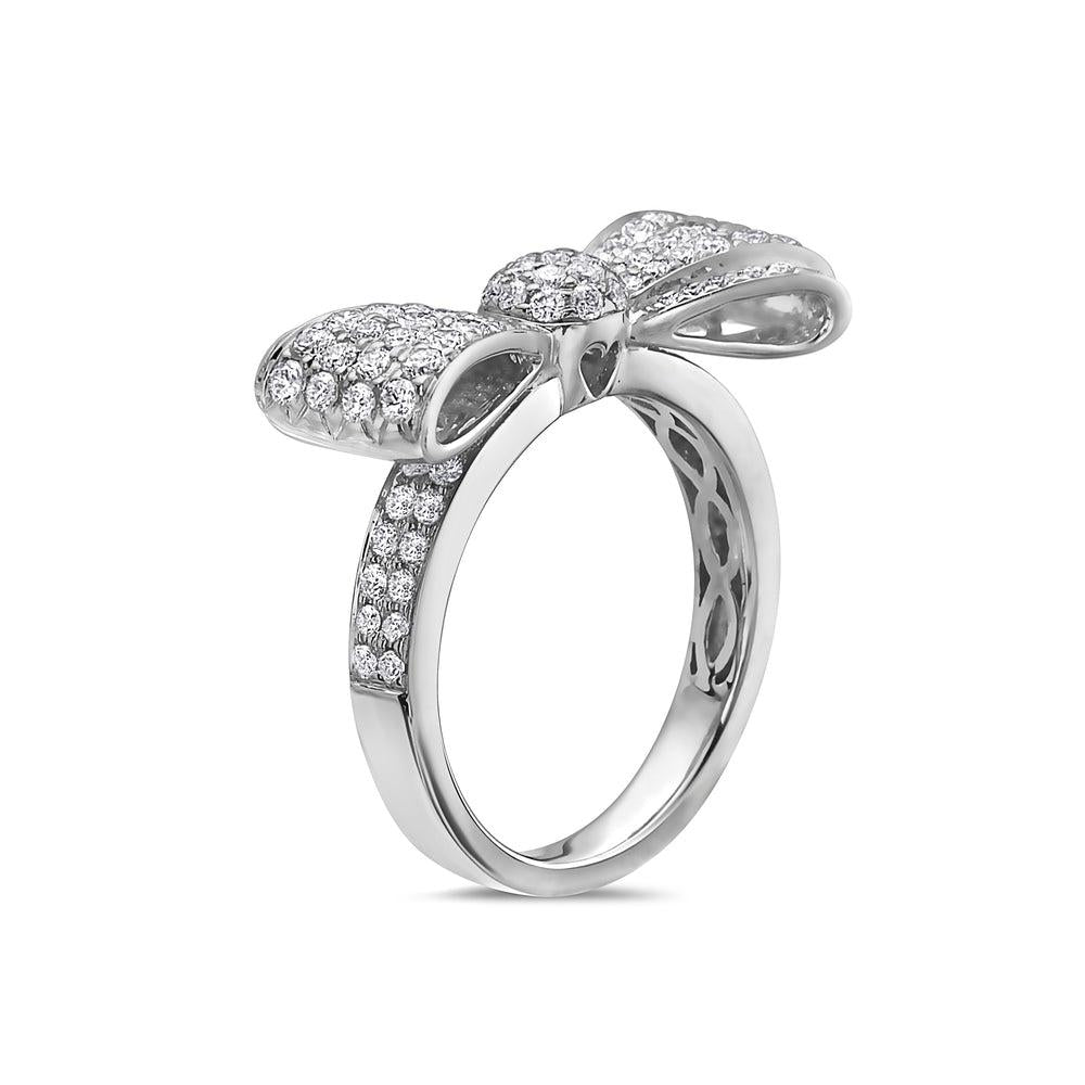 Ladies 18k white gold bow shaped right hand ring, with round cut diamonds