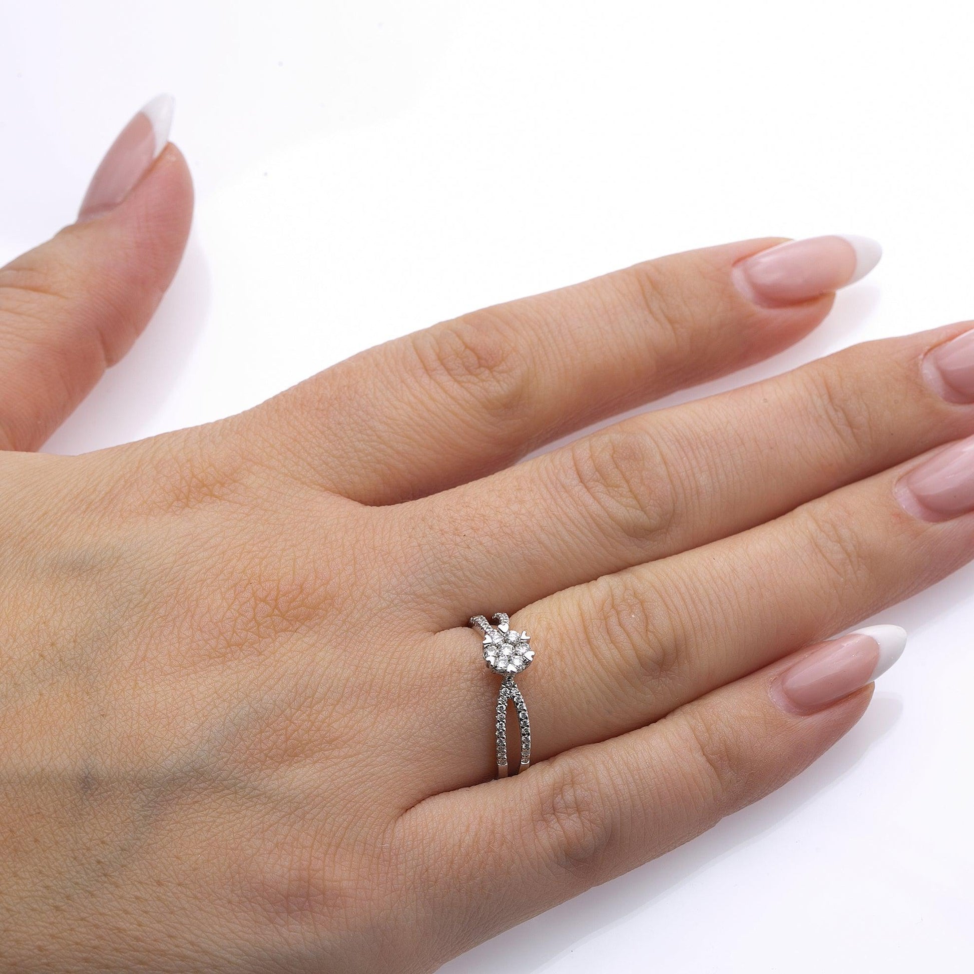 Ladies 14k White Gold Gold Diamond 0.42 CT Right Hand Ring