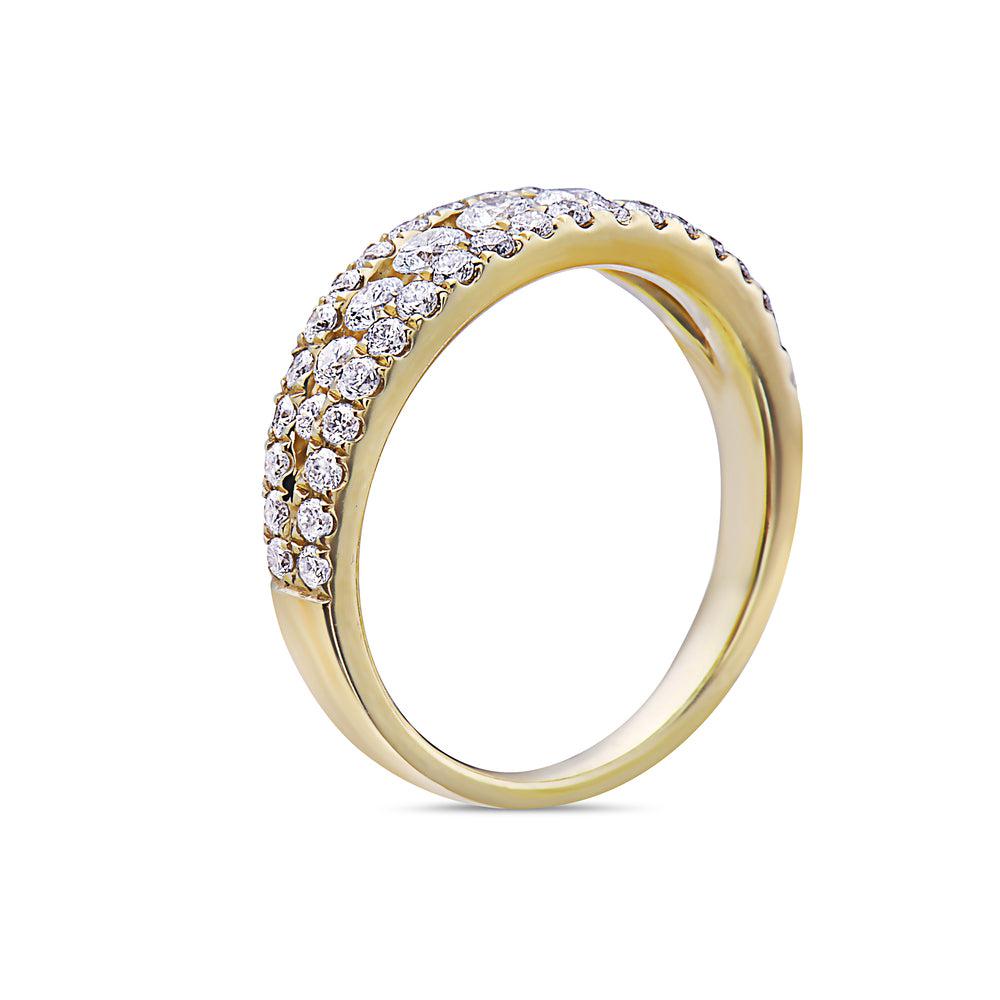 Ladies 18K yellow gold wedding band with 3 row round cut diamonds.