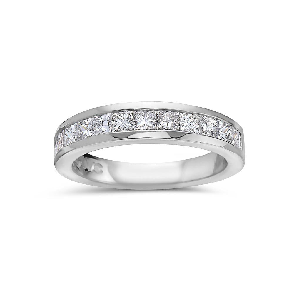 Ladies 14K white gold wedding band with square diamond set.
