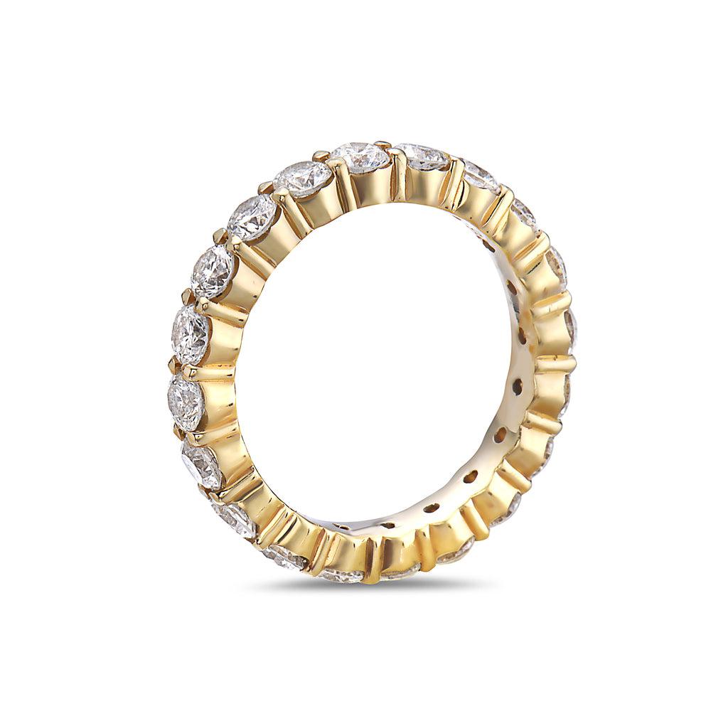 Ladies diamond 14K yellow gold eternity wedding band, with round diamonds around.