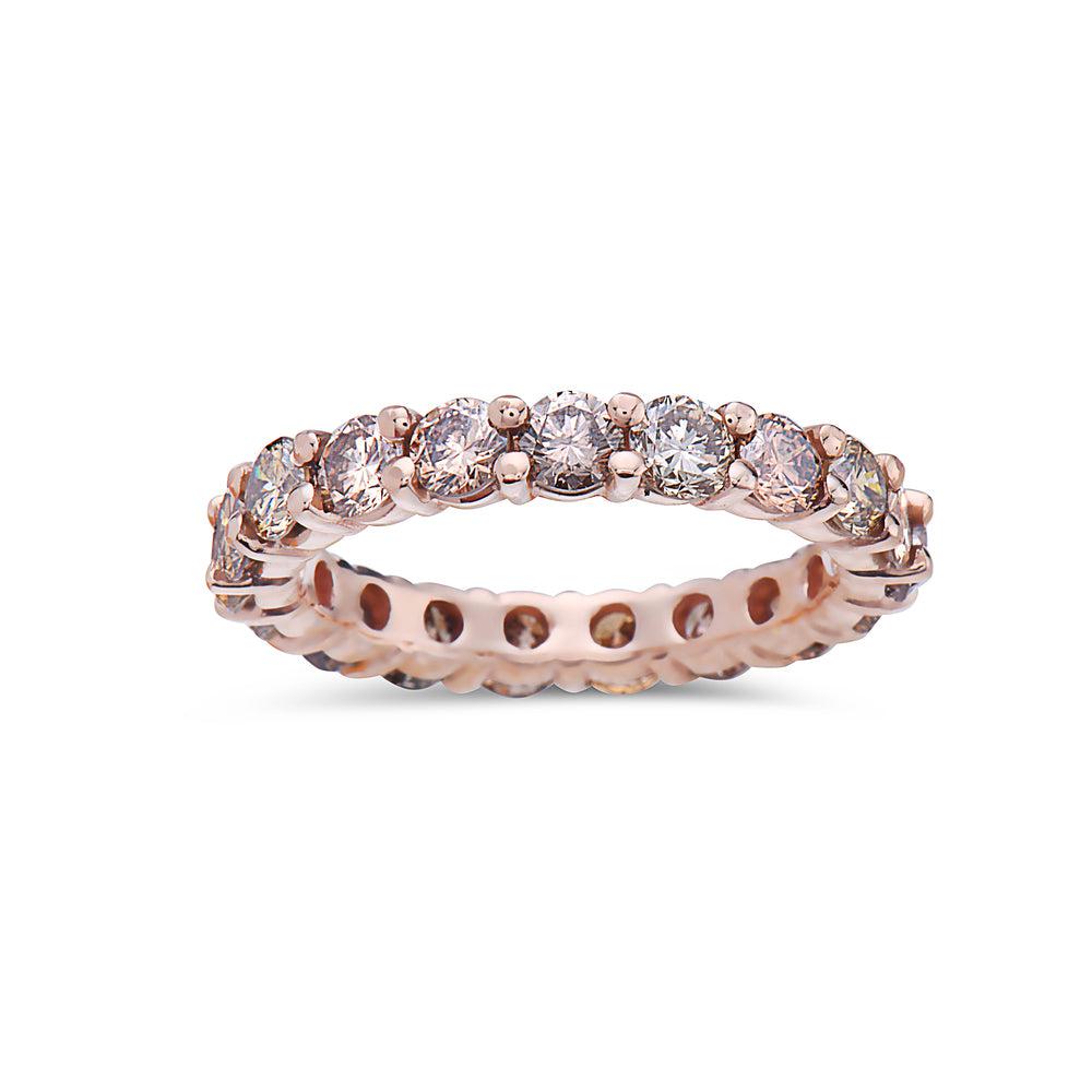 Ladies 14K rose gold eternity wedding band with colored diamonds. total weight is 3.50 grams with a ring size of 6. ring is non resizable