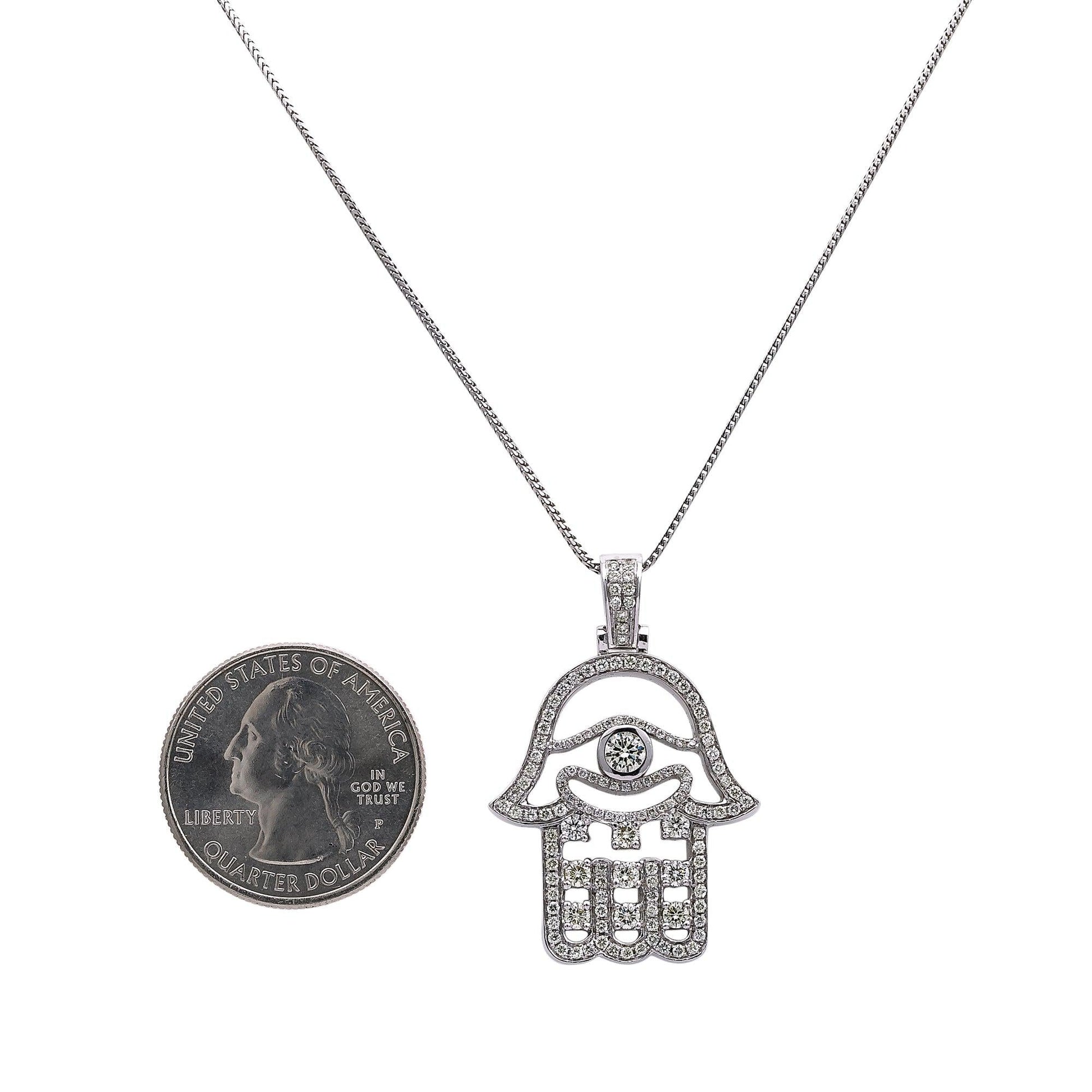 Men's 14K White Gold Hamsa Pendant with 2.02 CT Diamonds