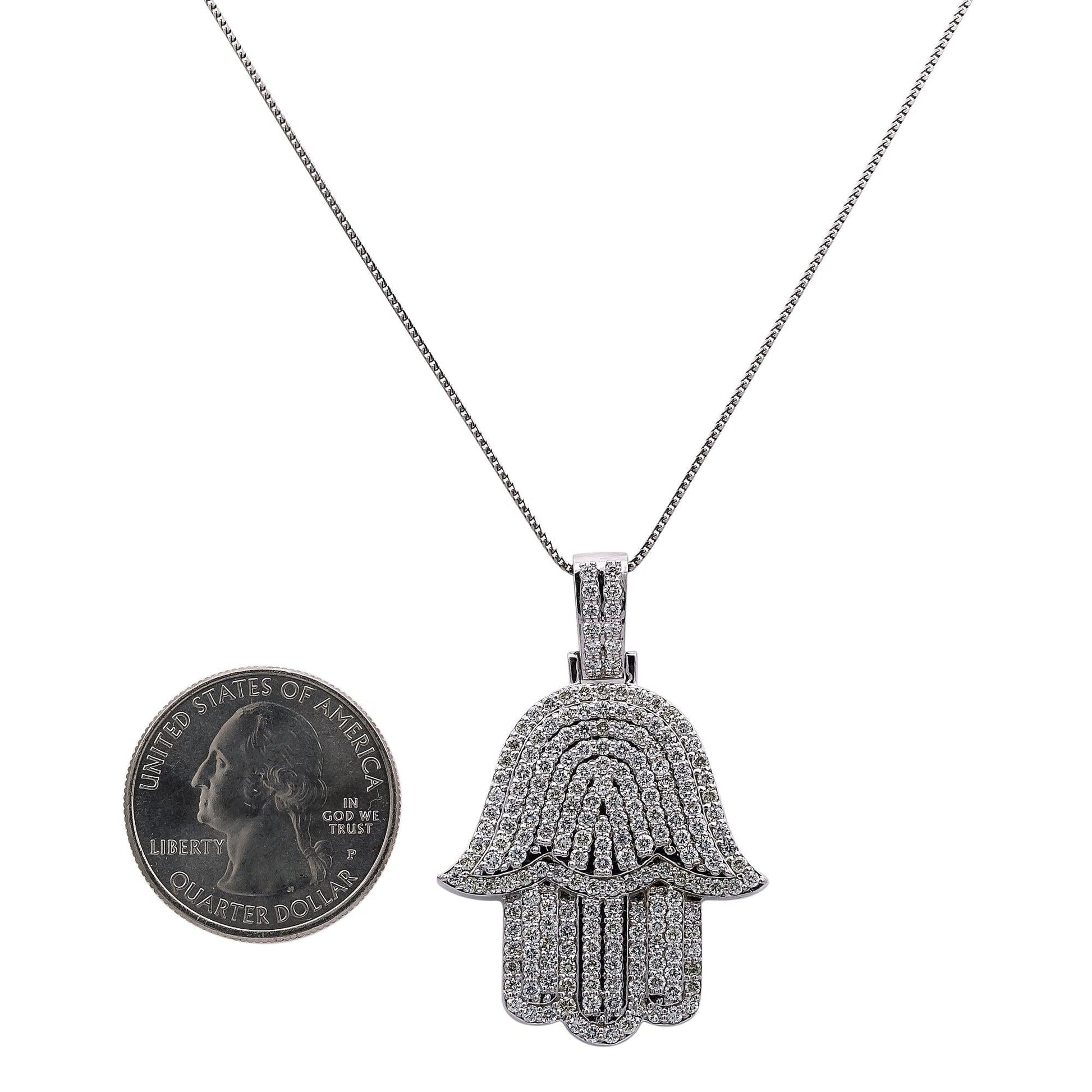 Men's 14K White Gold Hamsa Pendant with 2.95 CT Diamonds