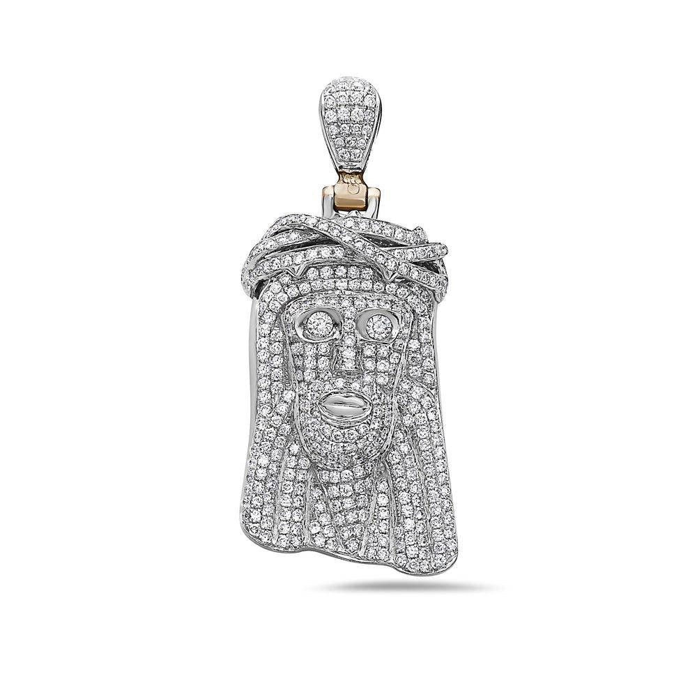 Men's 14K White Gold Jesus Head Pendant with 3.60 CT Diamonds