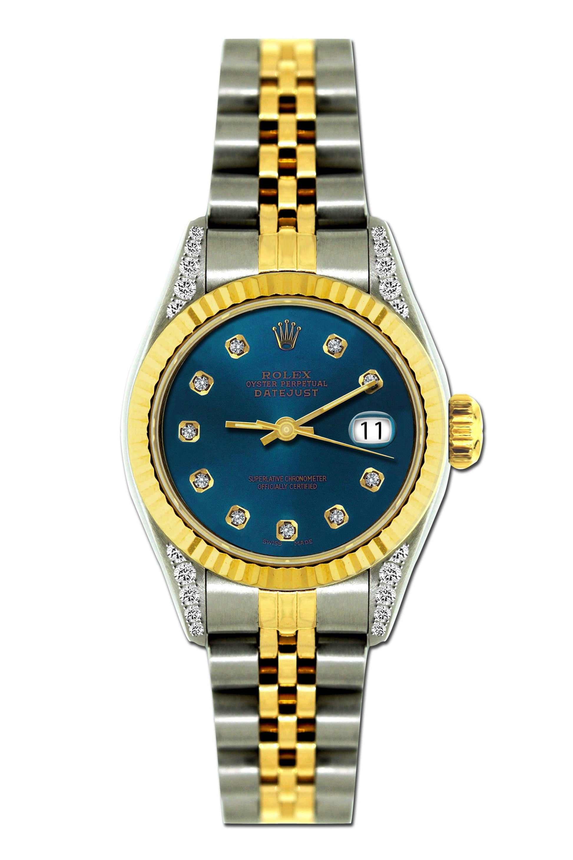 Rolex Datejust Diamond Watch, 26mm, Yellow Gold and Stainless Steel Bracelet Blue Dial w/ Diamond Lugs
