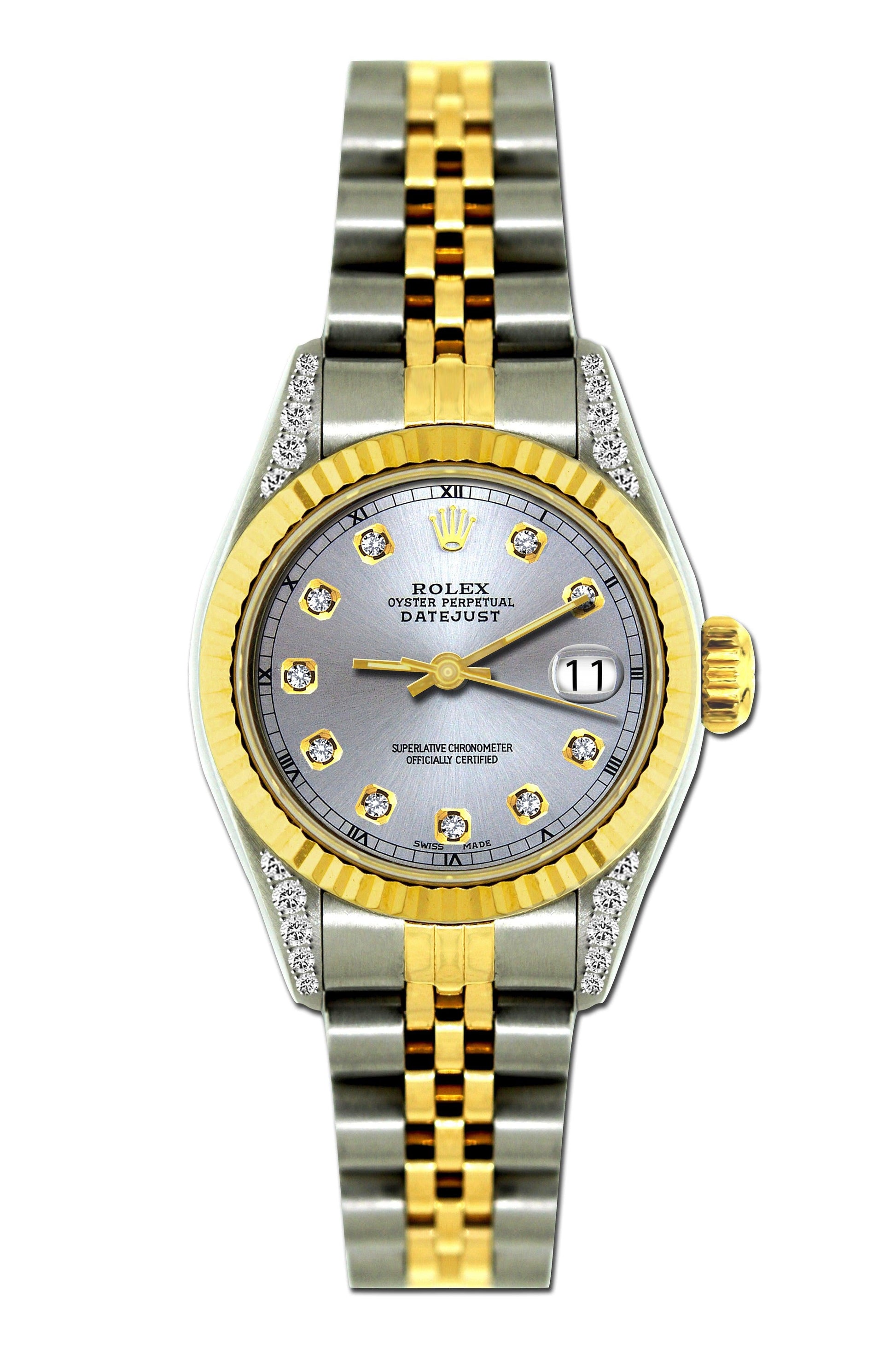 Rolex Datejust Diamond Watch, 26mm, Yellow Gold and Stainless Steel Bracelet Silver Dial w/ Diamond Lugs