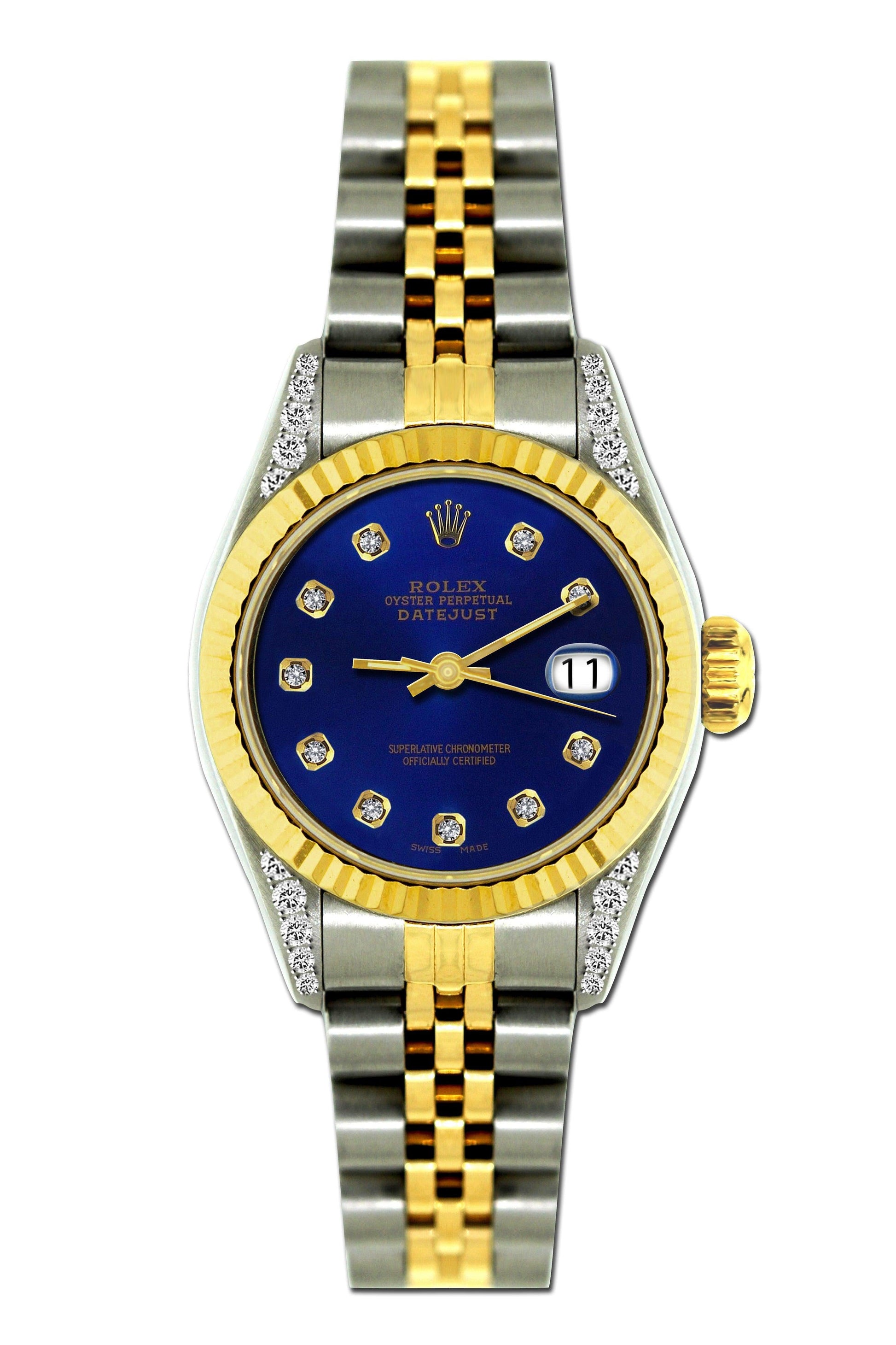 Rolex Datejust Diamond Watch, 26mm, Yellow Gold and Stainless Steel Bracelet Sapphire Dial w/ Diamond Lugs